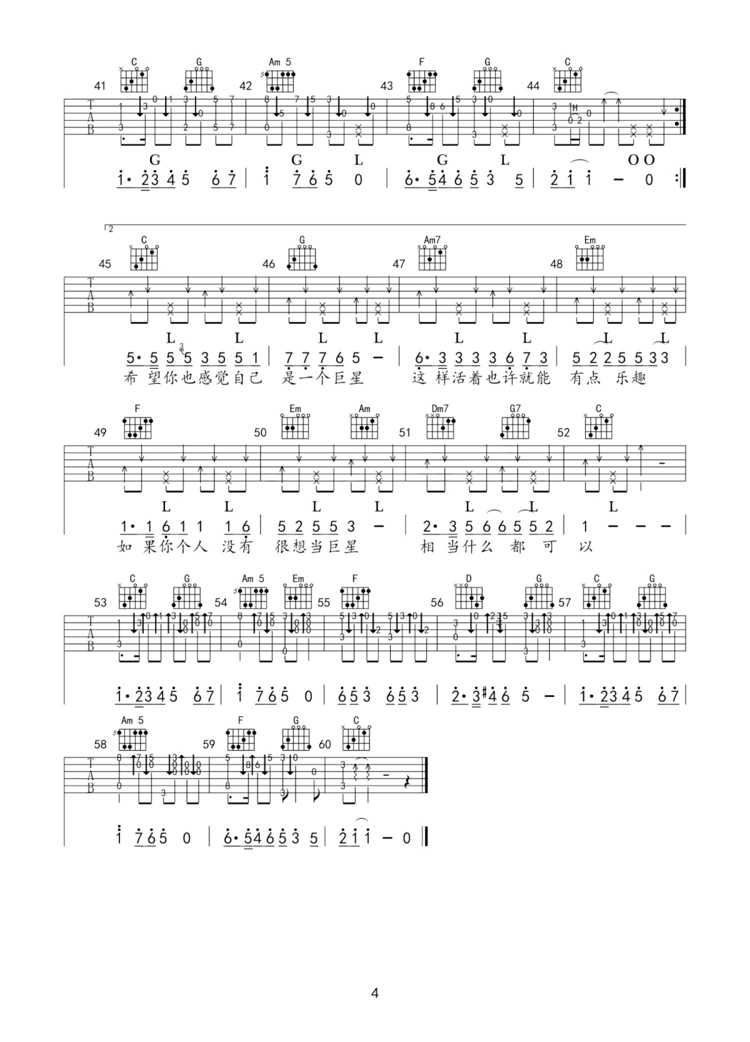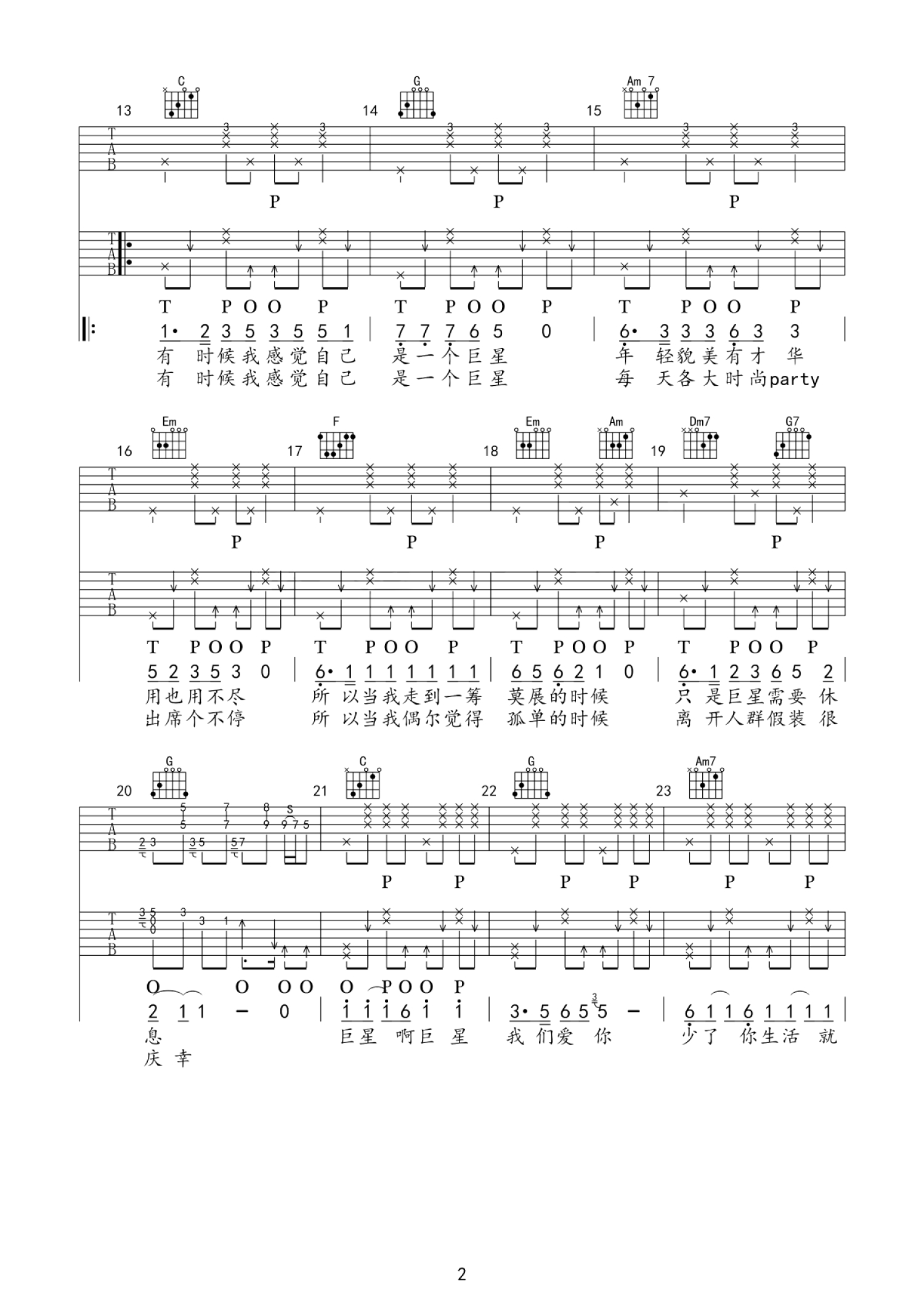 琴谱网为您精心推荐 感觉自己是巨星 高清图谱