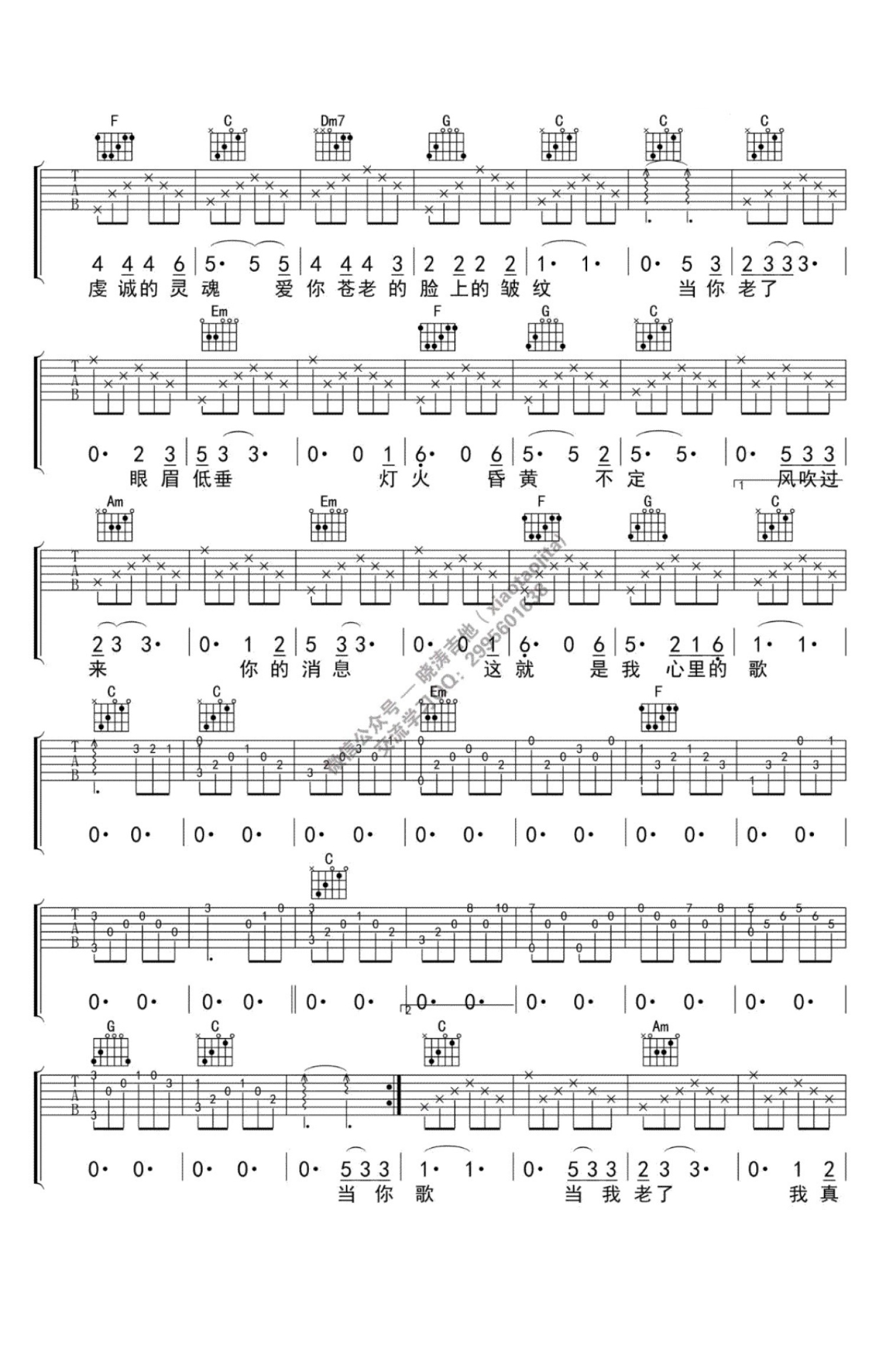 曲谱介绍: 赵照《当你老了》吉他谱_C调吉他弹唱谱