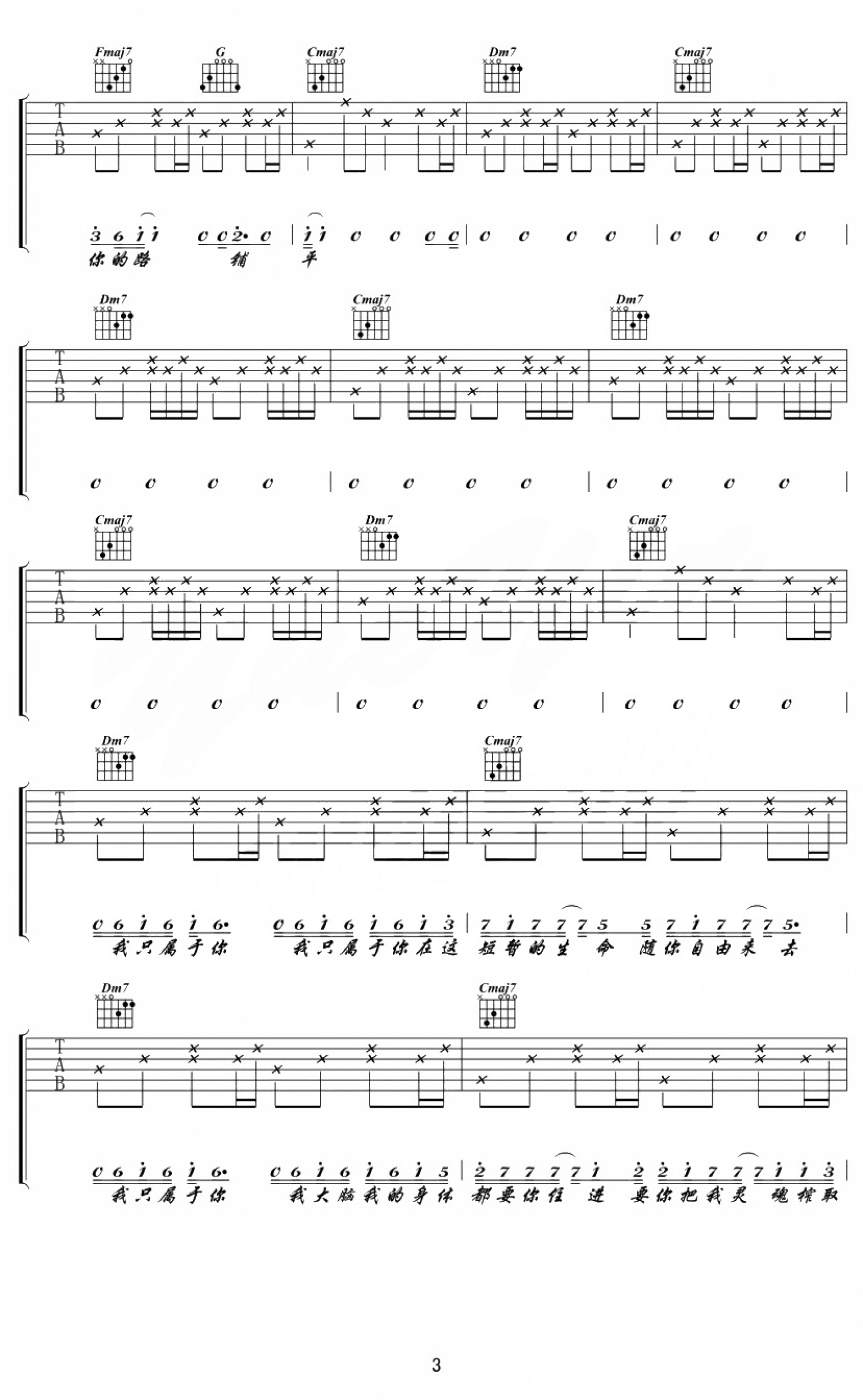 当前位置:琴谱网>吉他弹唱>绝对占有 相对自由