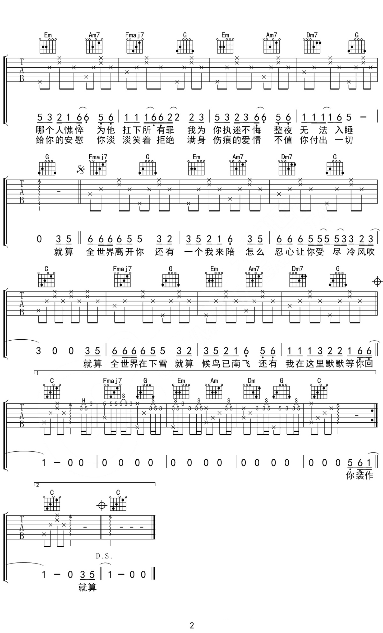吉他弹唱C调来源:无限延音811 浏览2020-08-18 22:43发布图谱共2页