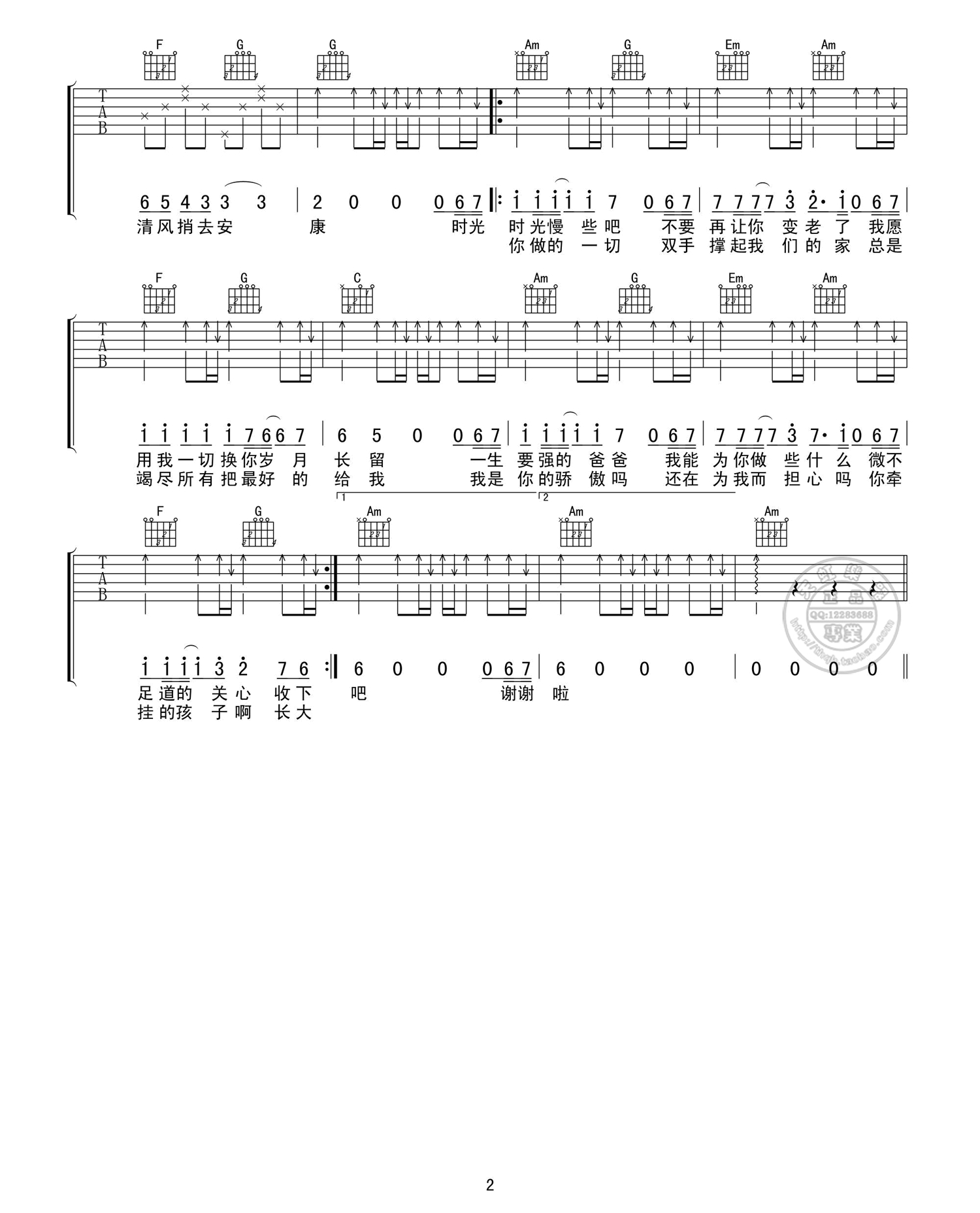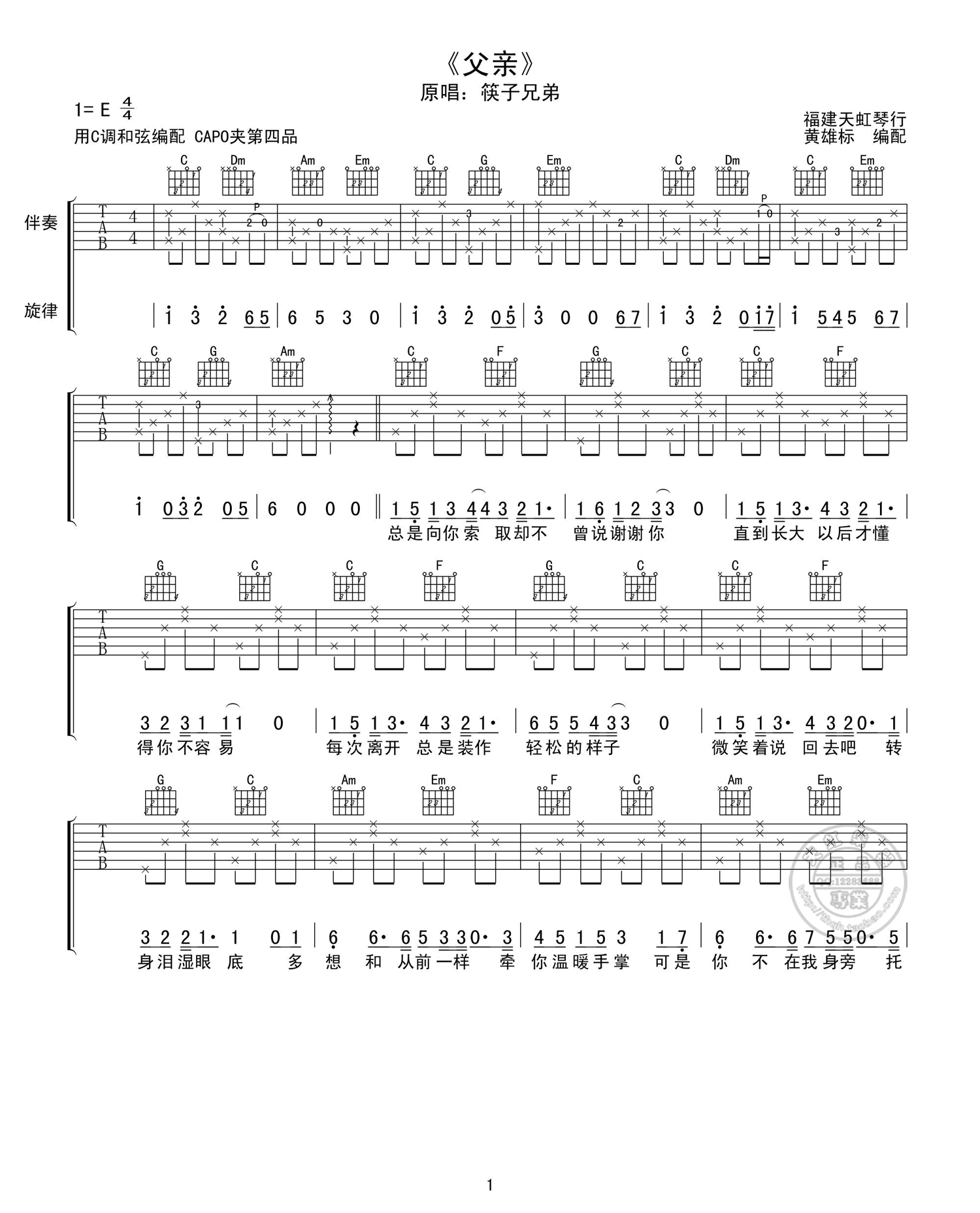 曲谱介绍: 筷子兄弟《父亲》吉他谱_C调吉他弹唱谱