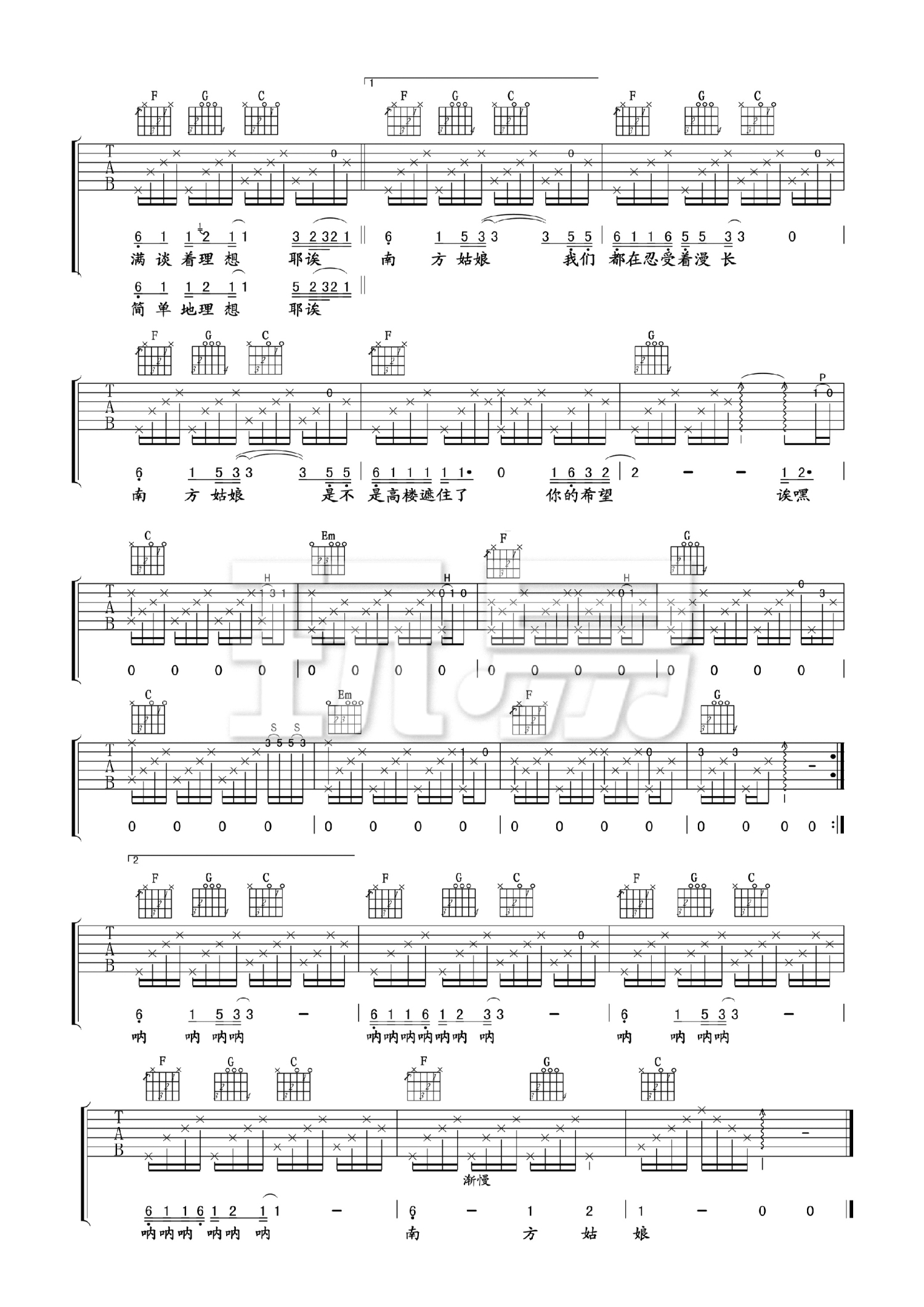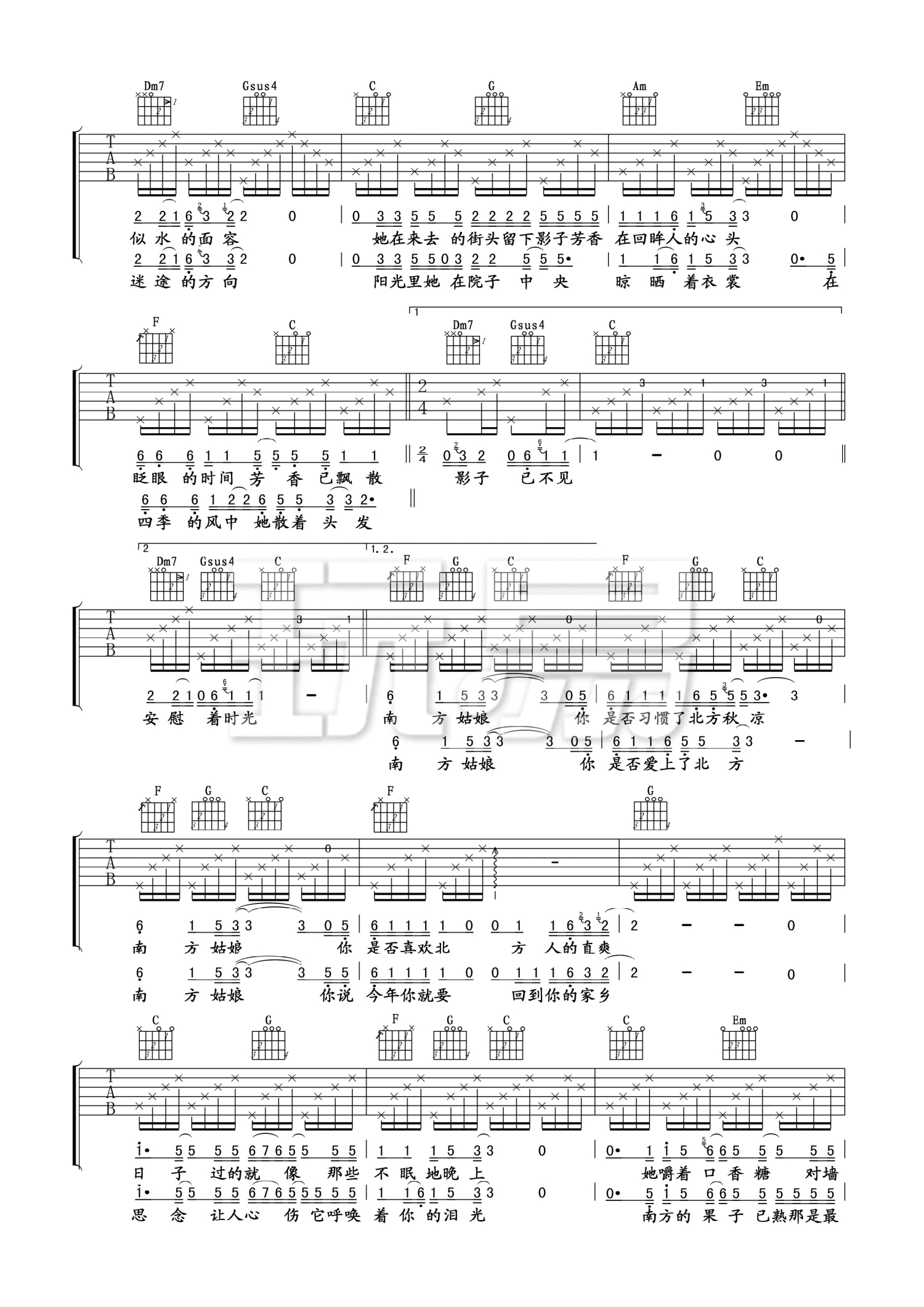 当前位置:琴谱网>吉他弹唱>南方姑娘