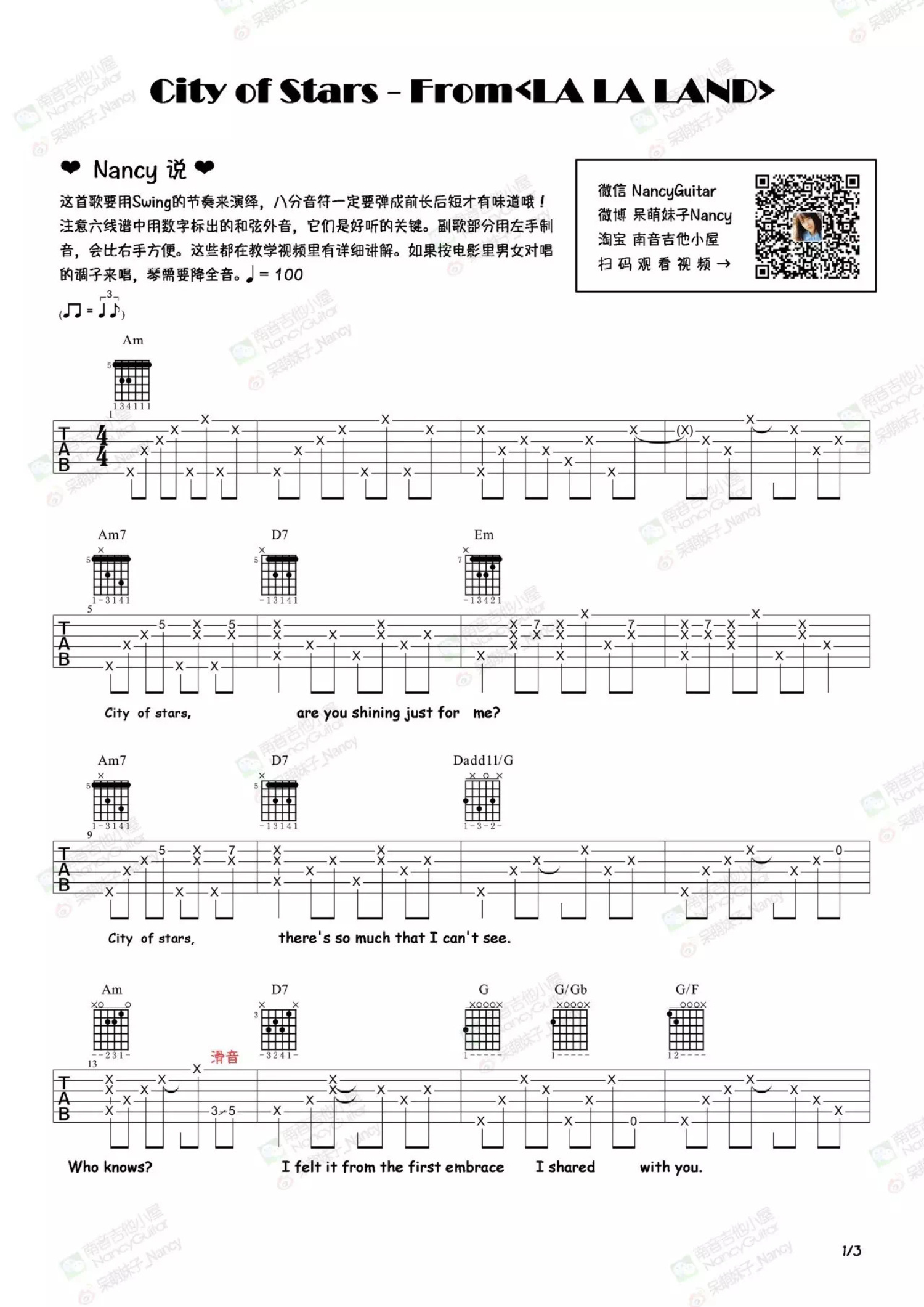 当前位置:琴谱网>吉他弹唱>City of stars