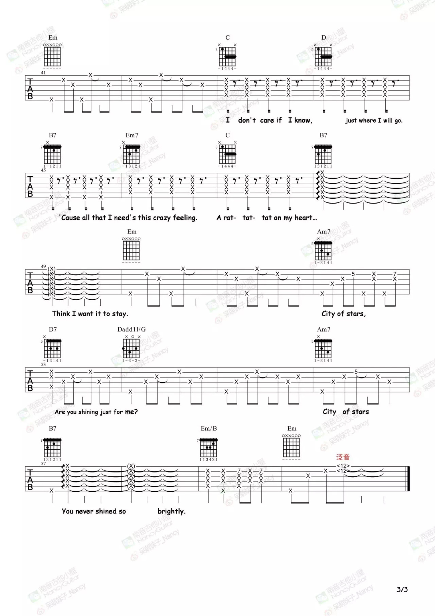 曲谱介绍: 爱乐之城主题曲《City of stars》吉他谱_吉他弹唱谱