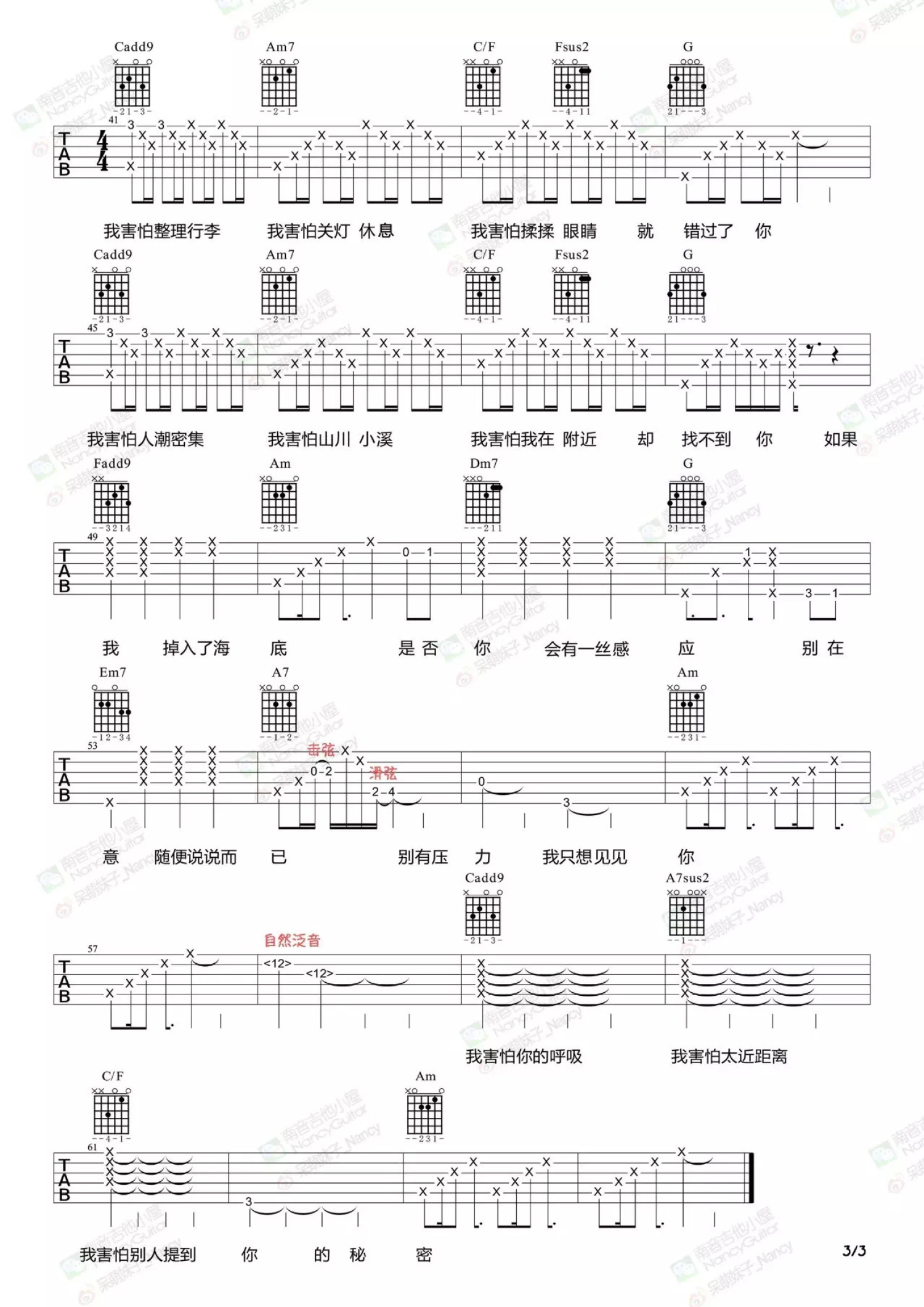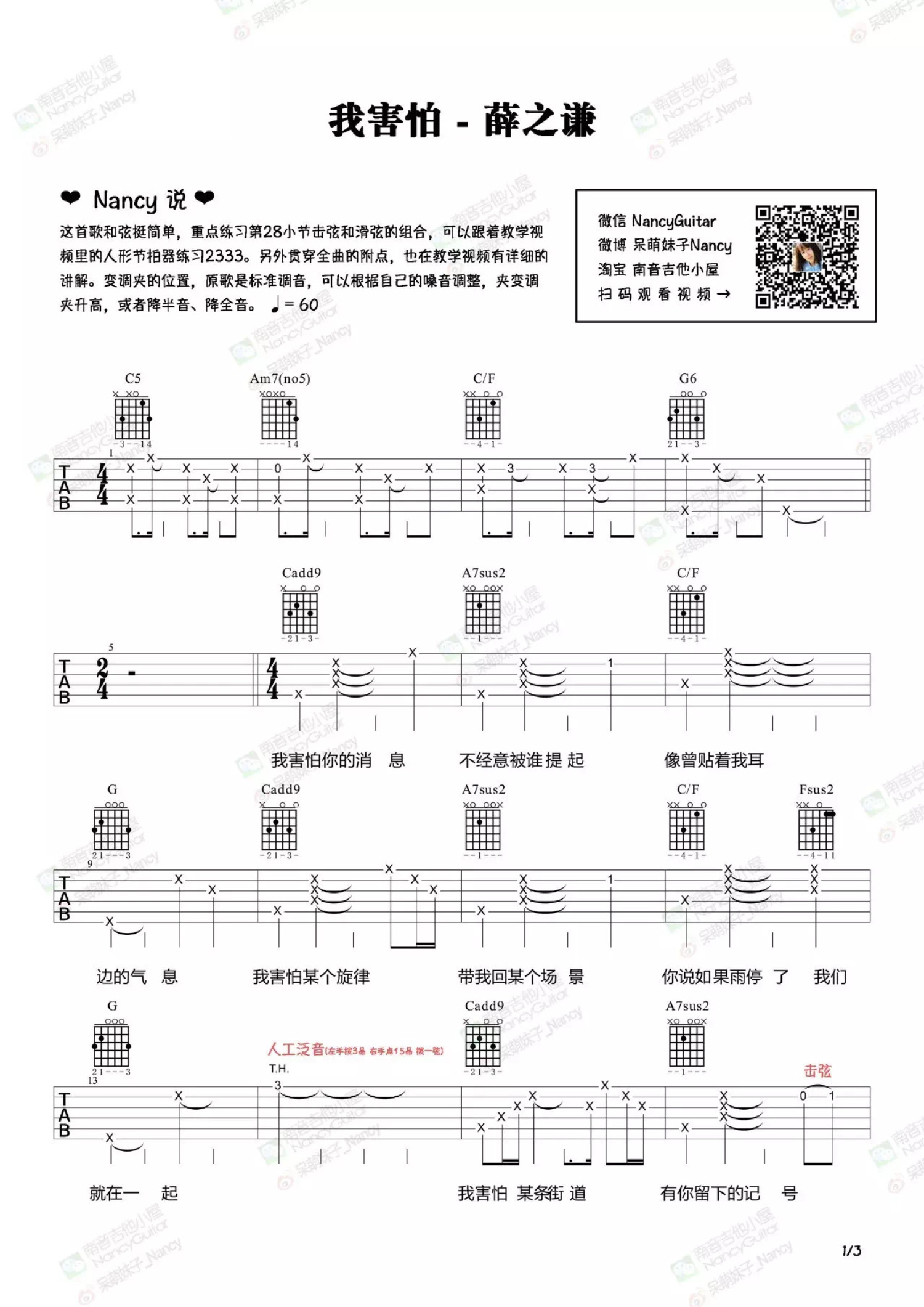 曲谱介绍: 薛之谦《我害怕》吉他谱_吉他弹唱谱