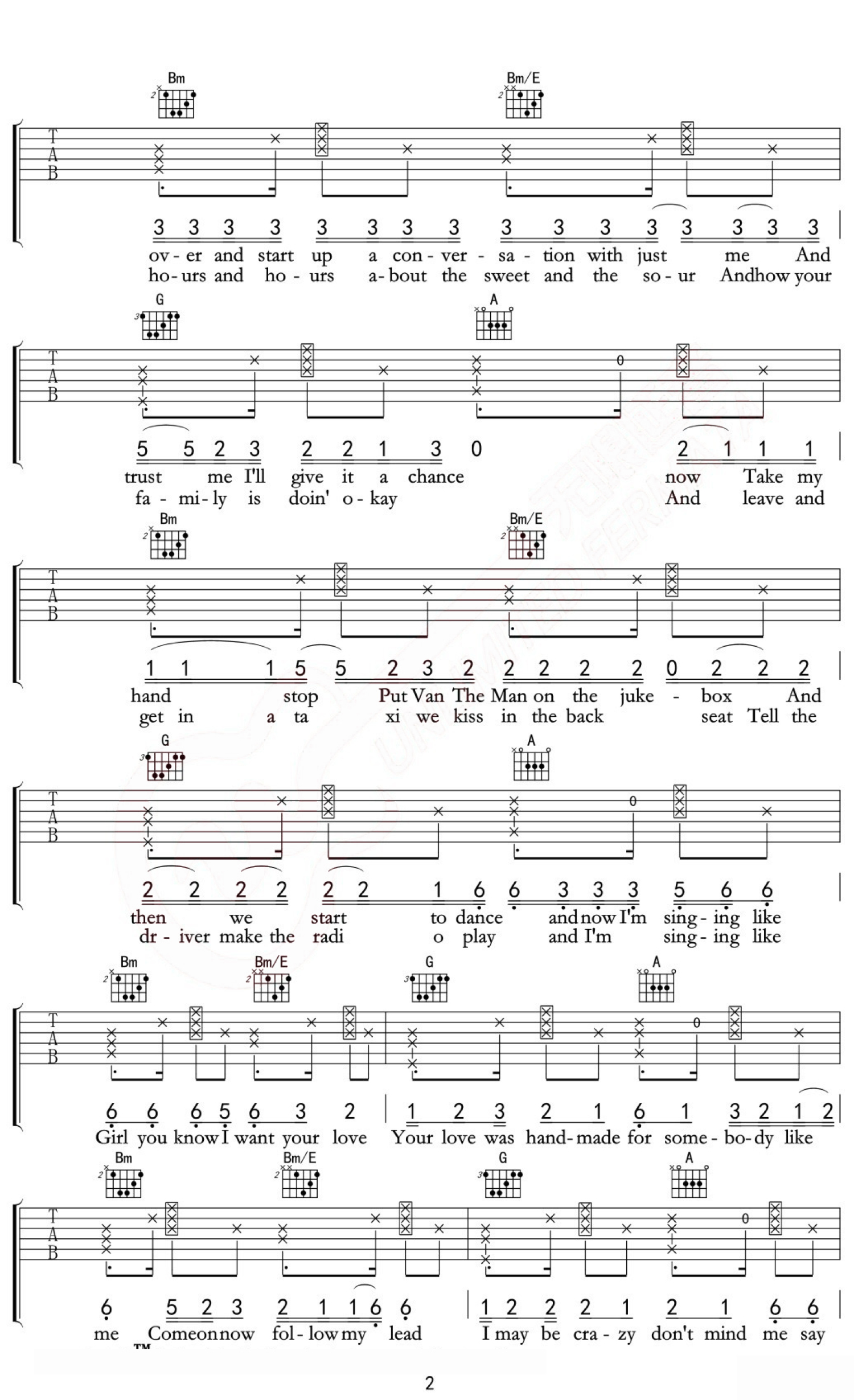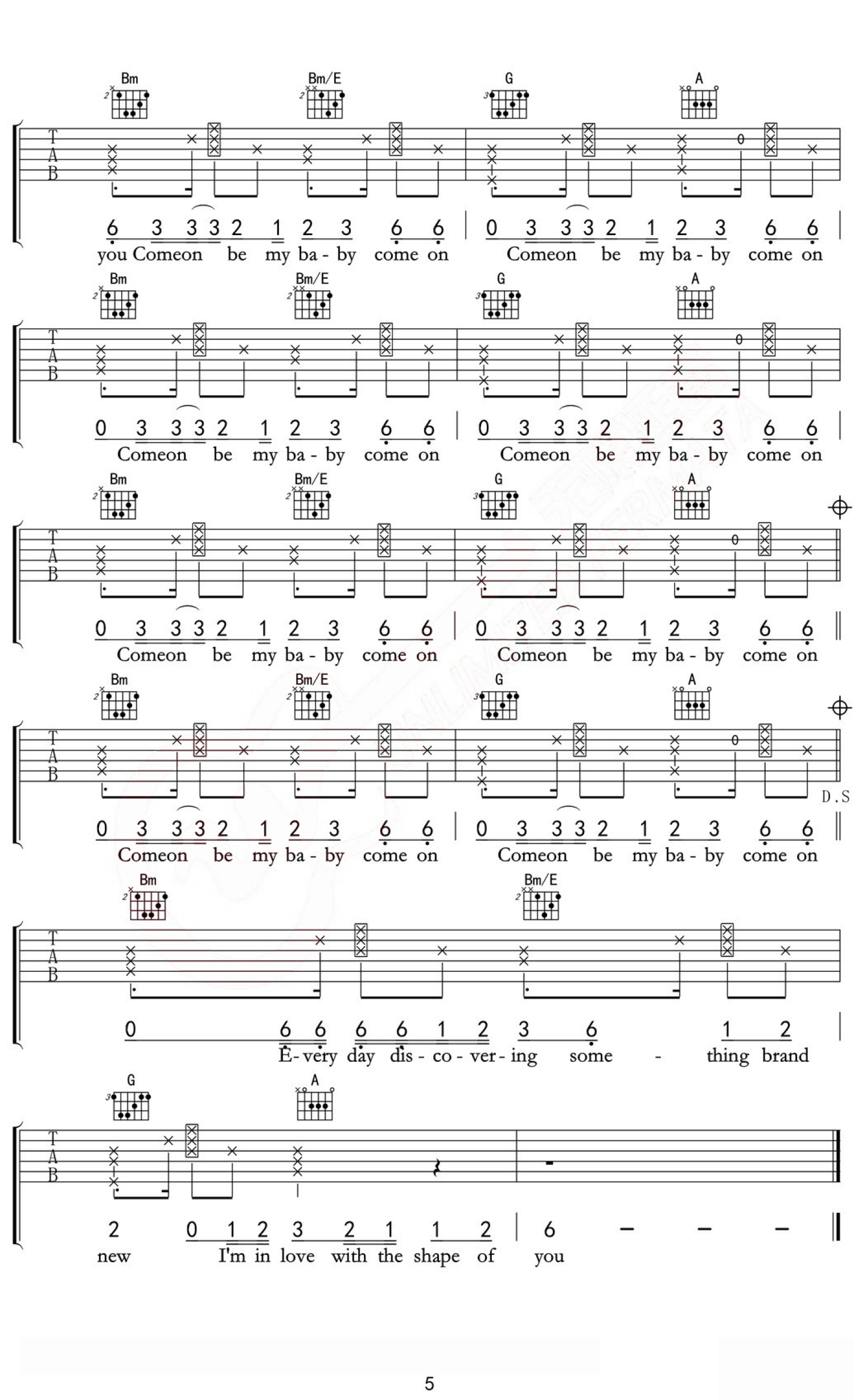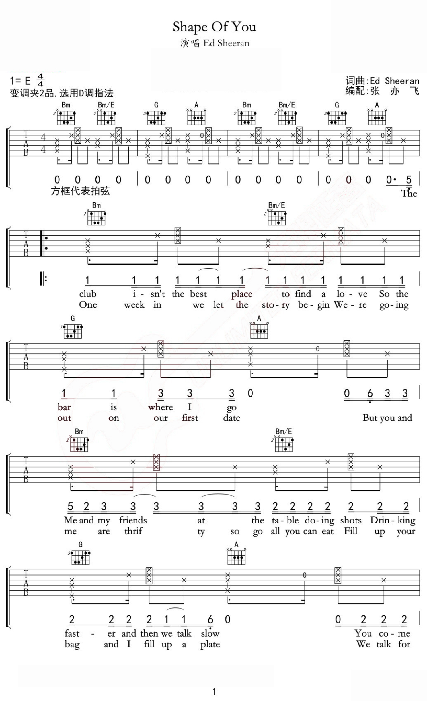 Shape Of You吉他谱 - EdSheeran - D调吉他弹唱谱