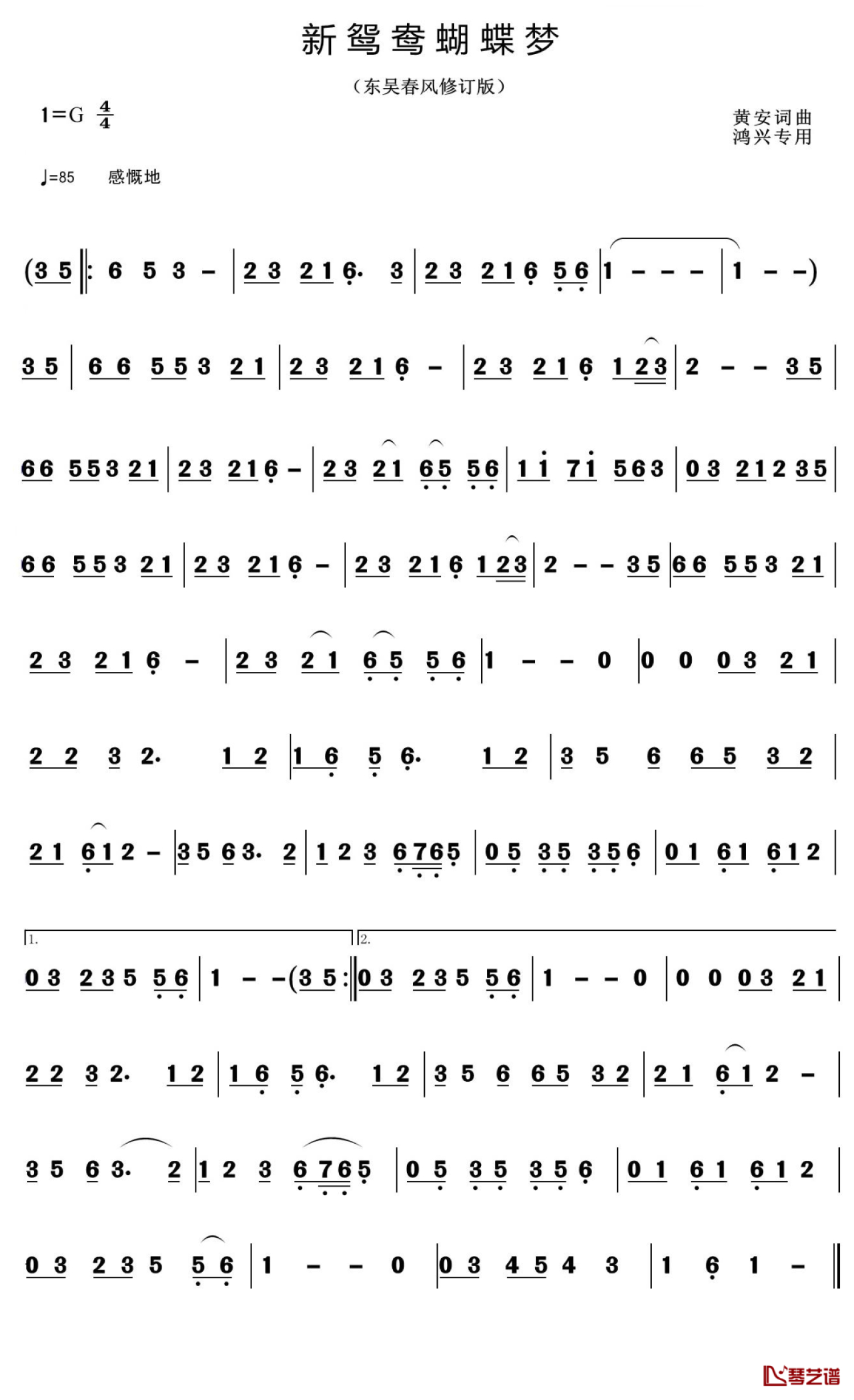 新鸳鸯蝴蝶梦简谱 - 黄安