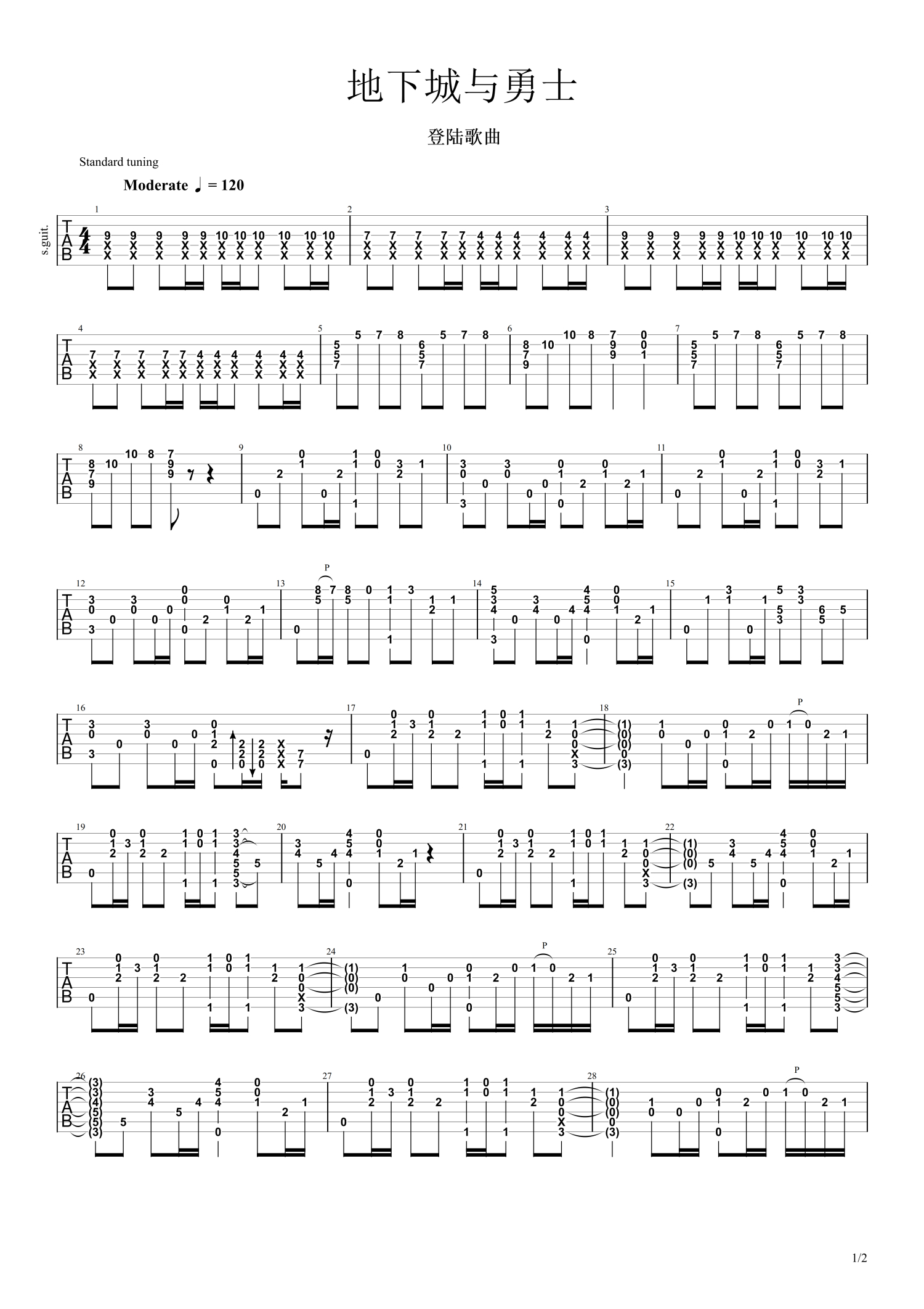 • 地下城与勇士吉他谱 - 游戏音乐 - C调吉他独奏谱第1张