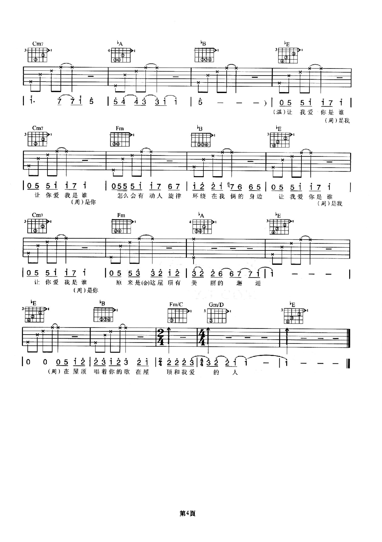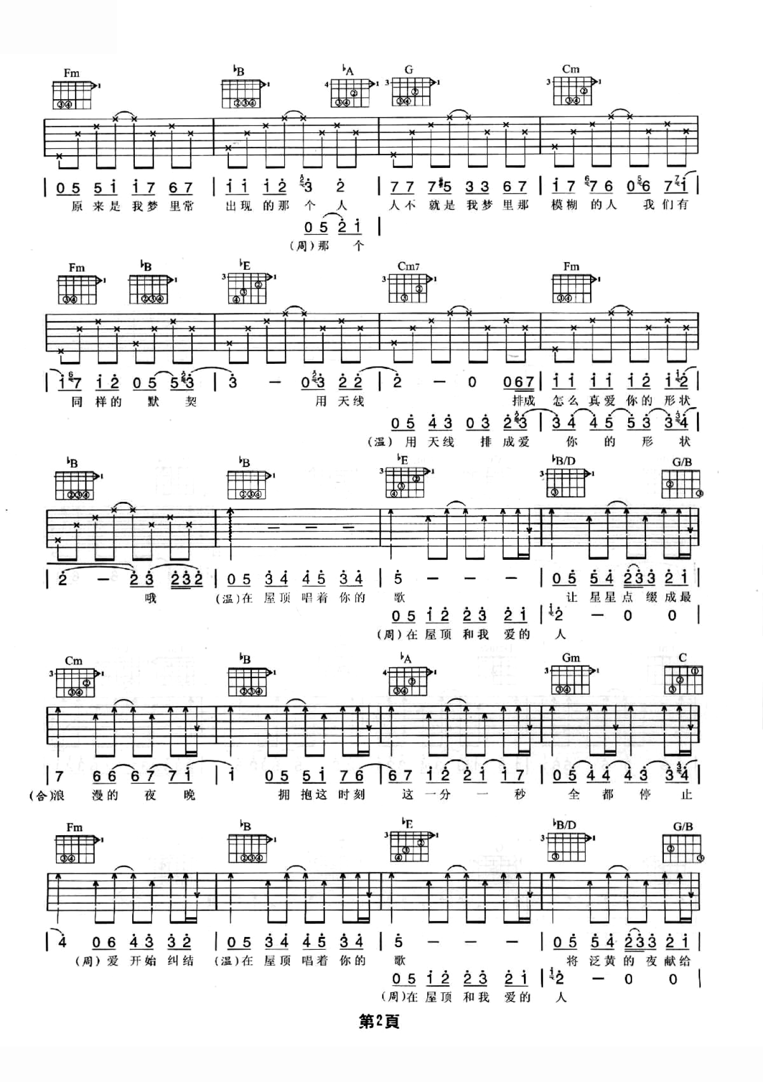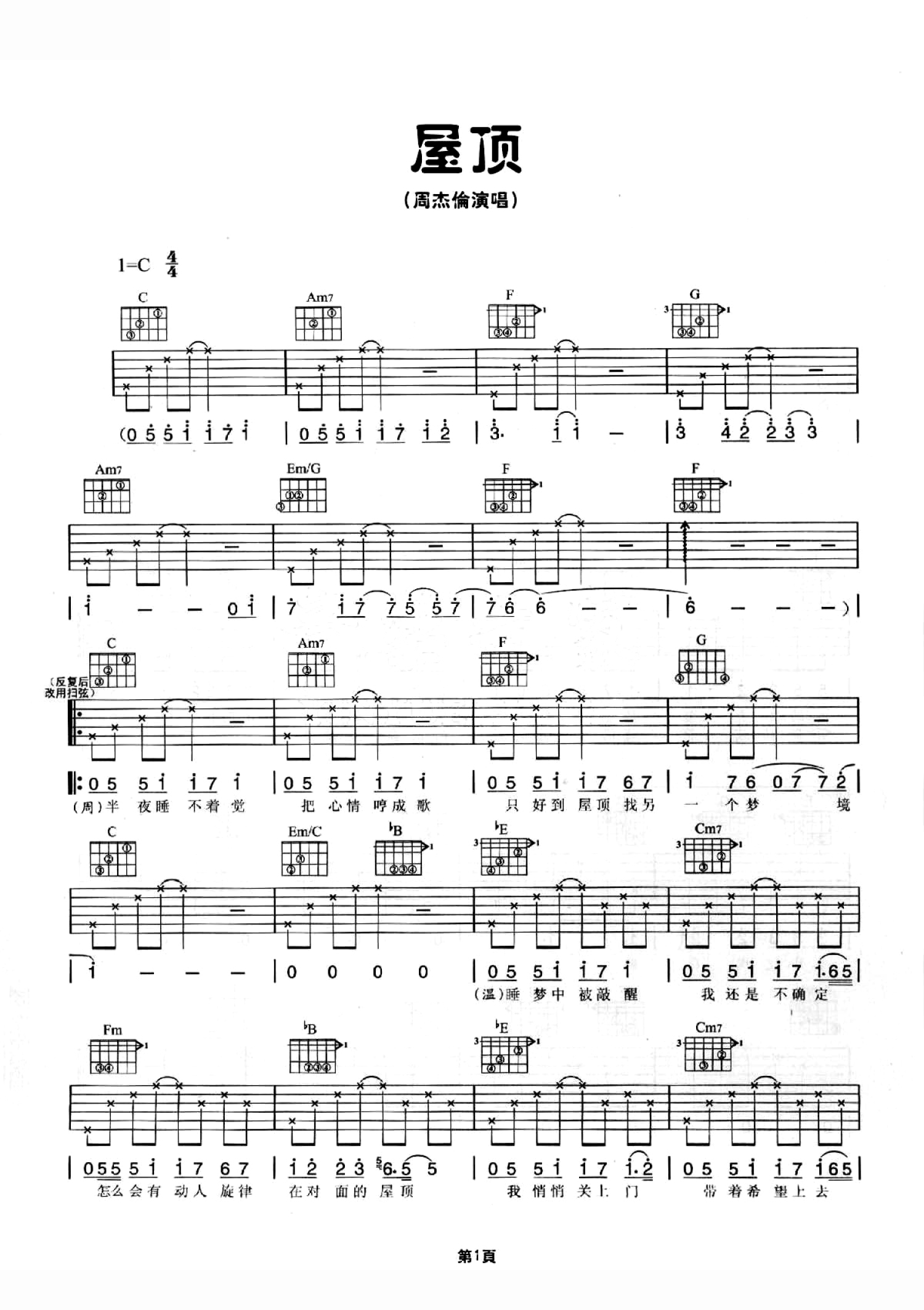 曲谱介绍: 周杰伦《屋顶》吉他谱_C调吉他弹唱谱