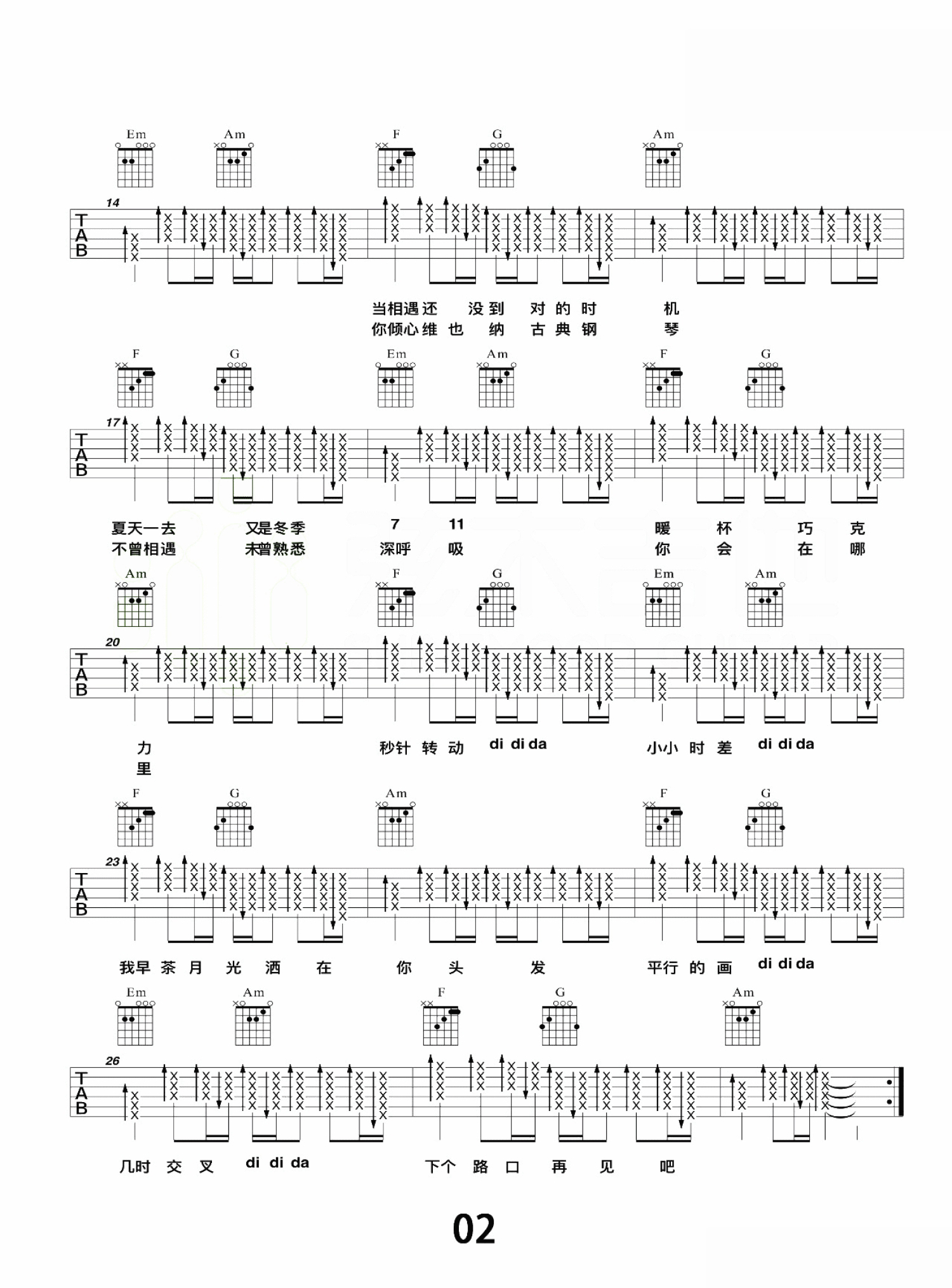 吉他弹唱C调来源:弦木吉他6546 浏览2020-09-03 12:37发布图谱共2页