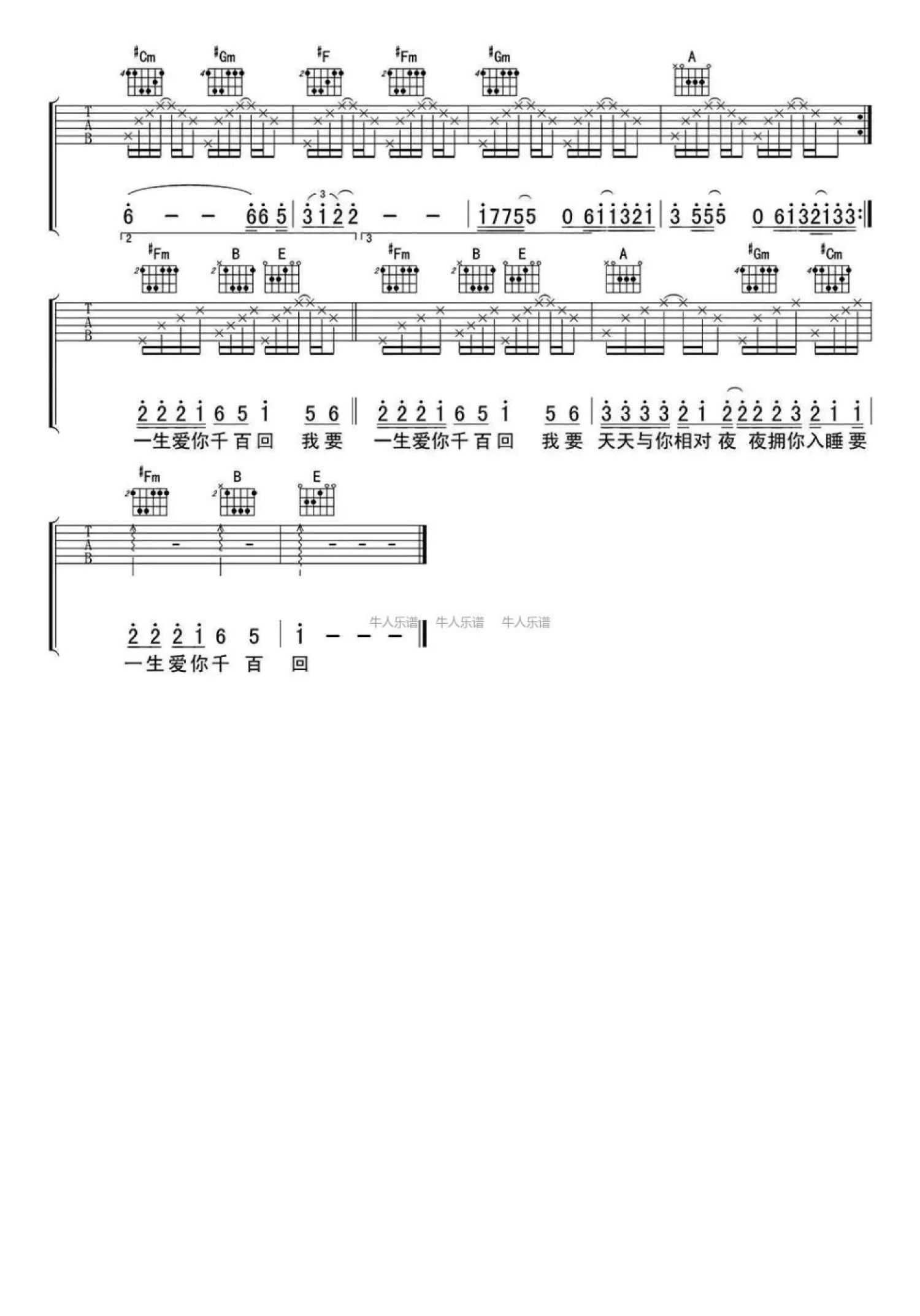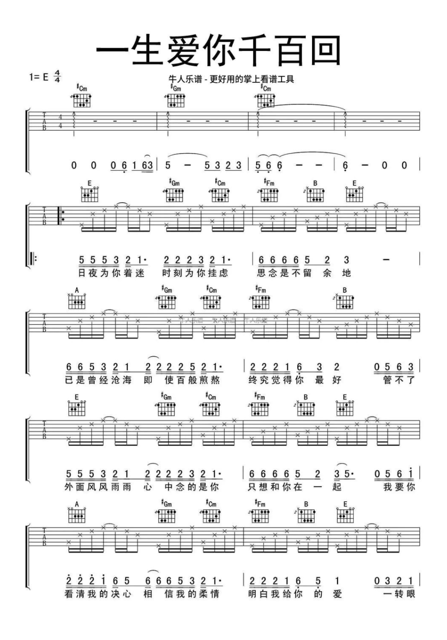 当前位置:琴谱网>吉他弹唱>一生爱你千百回