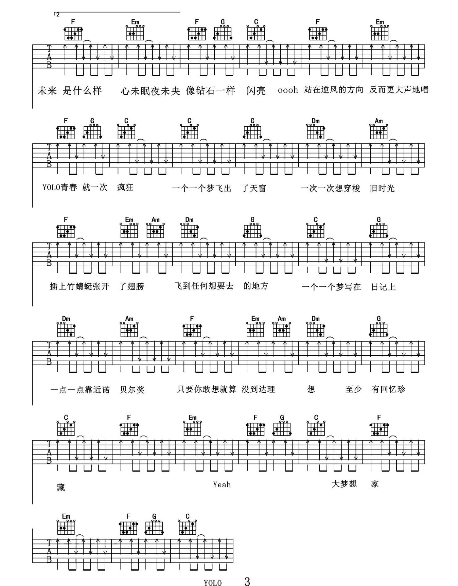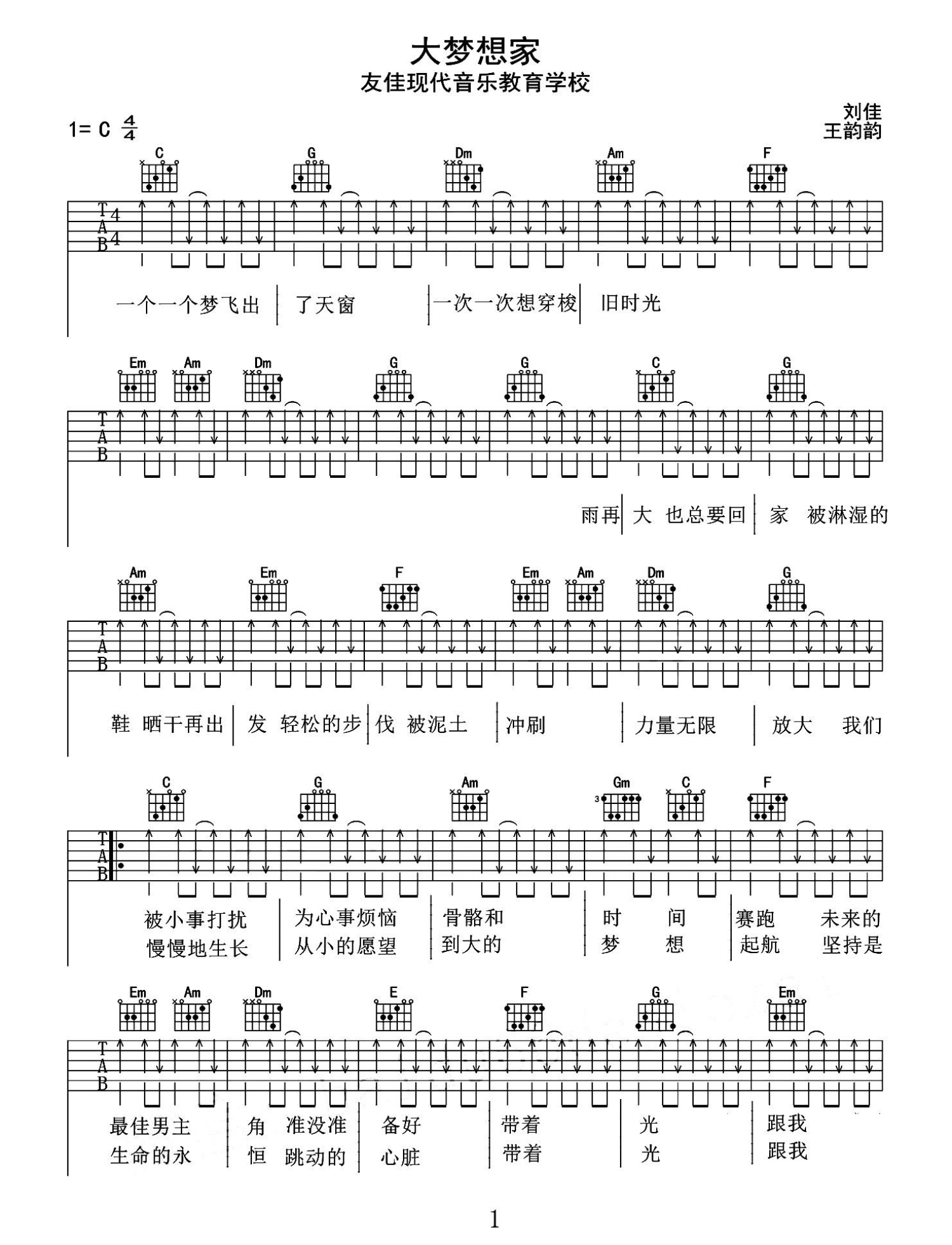 曲谱介绍: TFBOYS《大梦想家》吉他谱_C调吉他弹唱谱