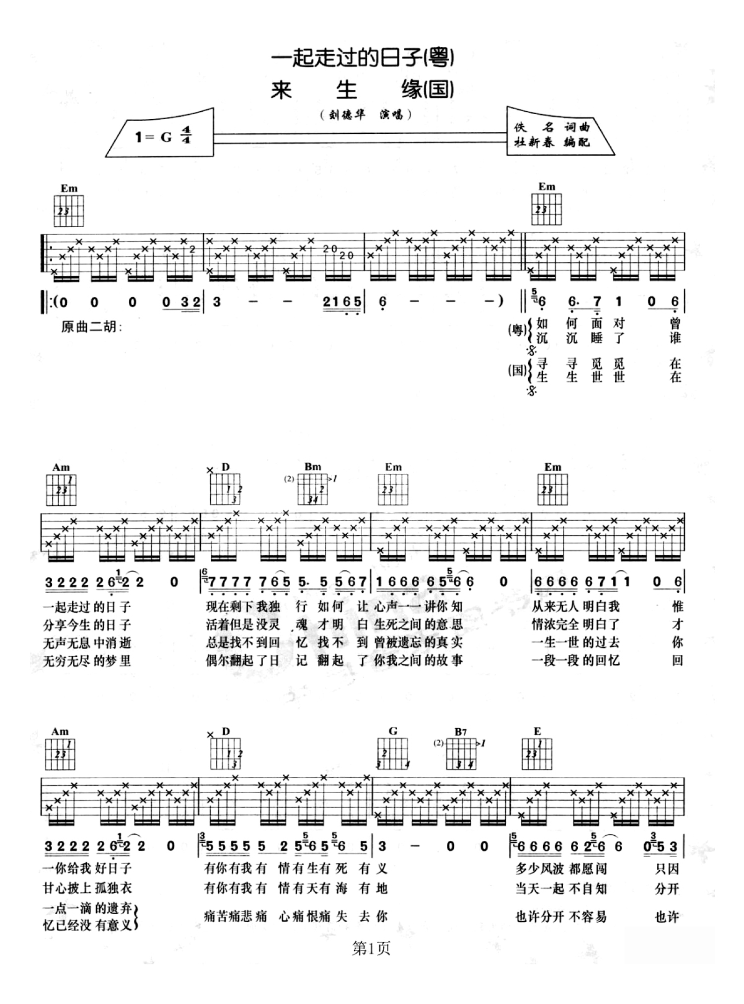 曲谱介绍: 刘德华《来生缘》吉他谱_C调吉他弹唱谱