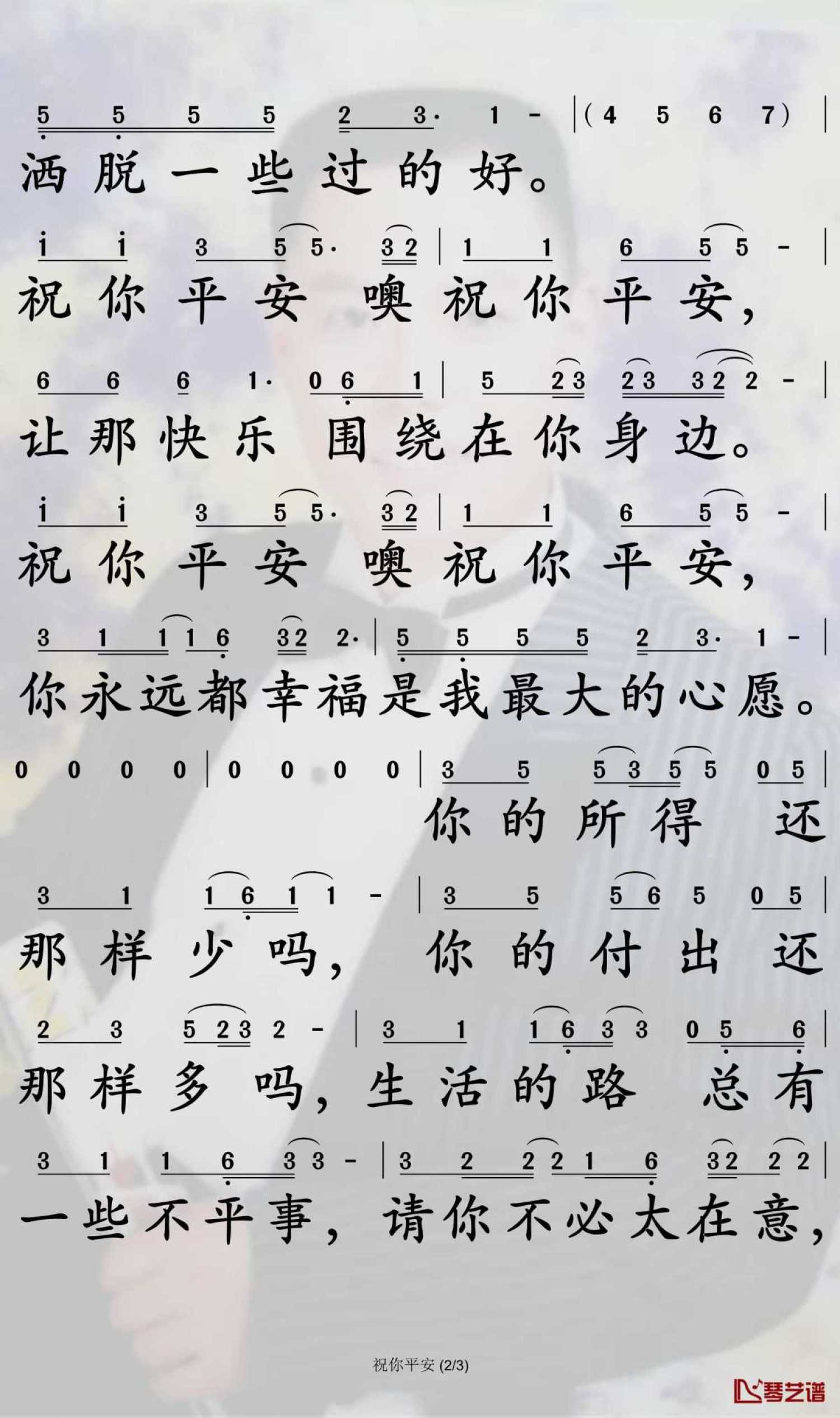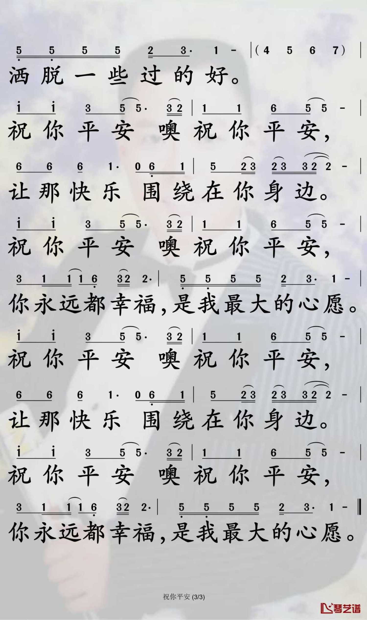 当前位置:琴谱网>简谱>祝你平安