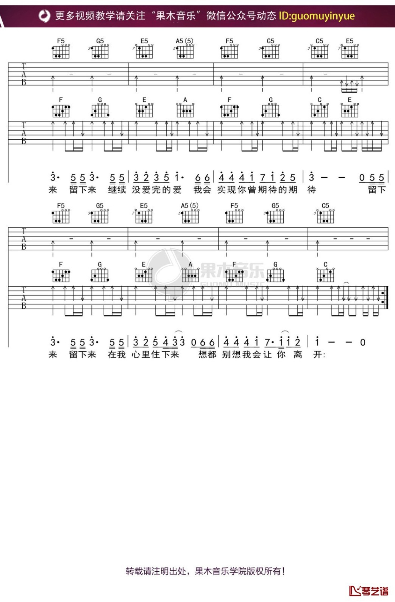 当前位置:琴谱网>吉他弹唱>留下来