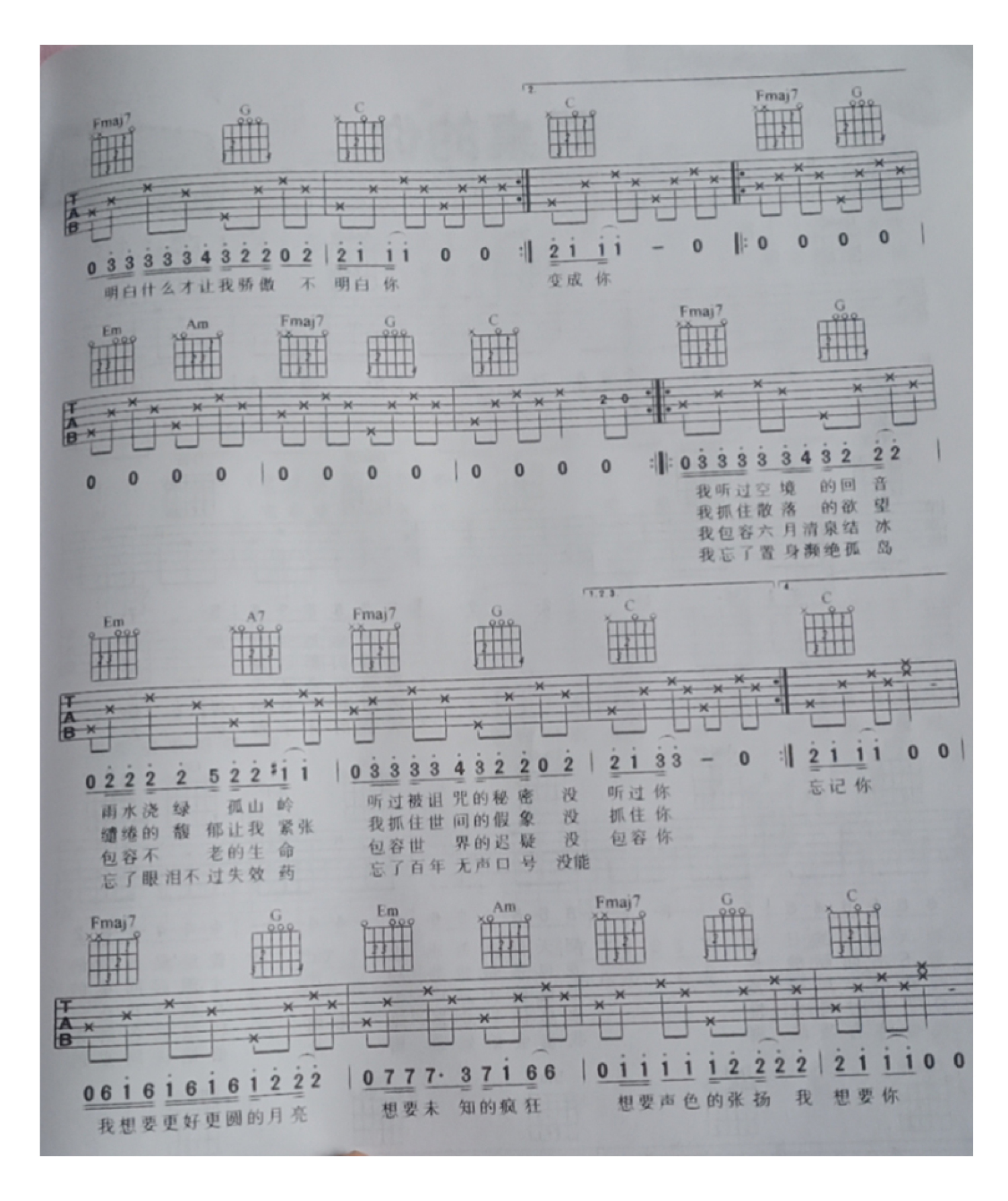 吉他弹唱C调来源:最易上手1510 浏览2020-09-16 10:40发布图谱共2页