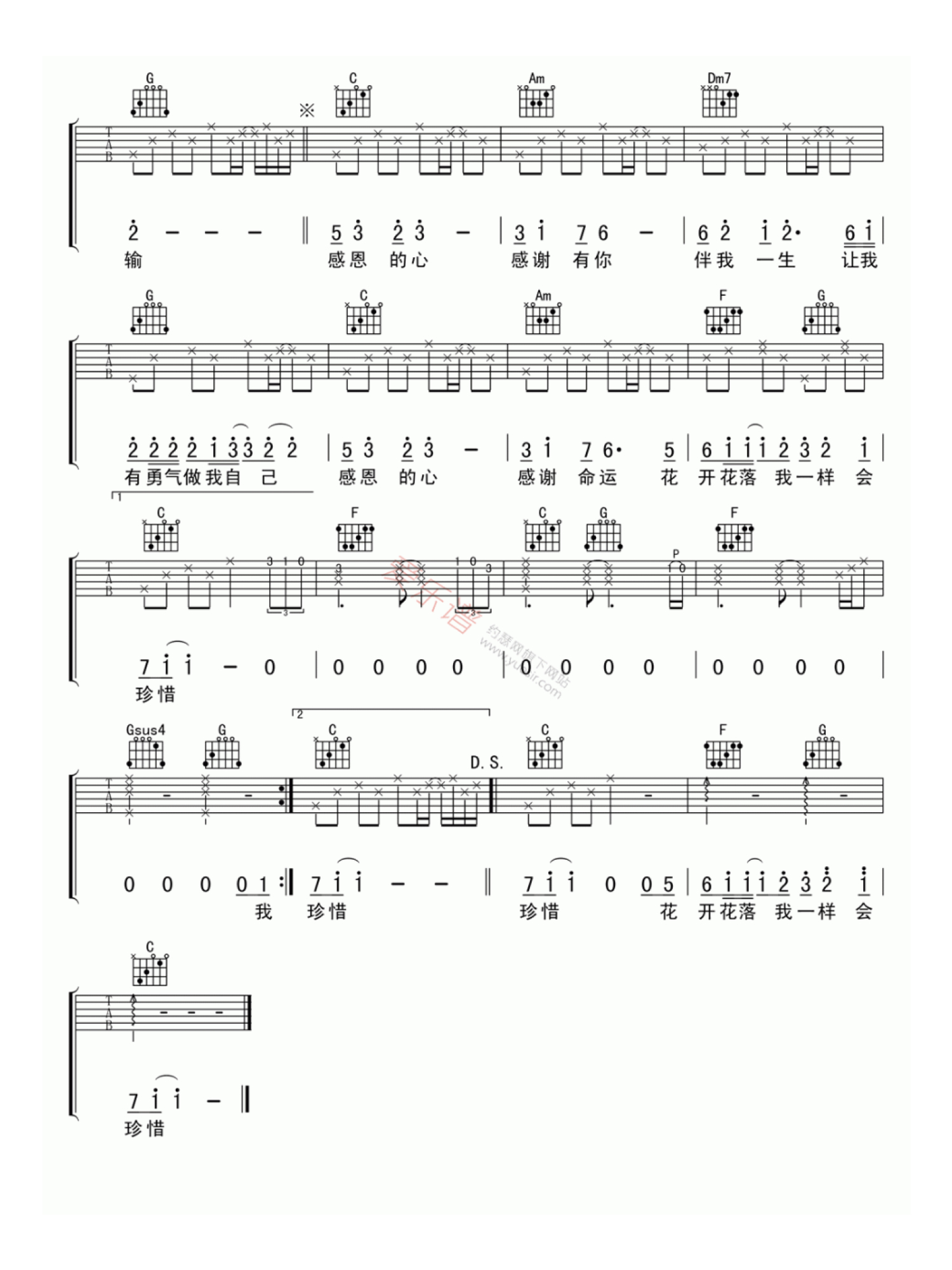 当前位置:琴谱网>吉他弹唱>感恩的心