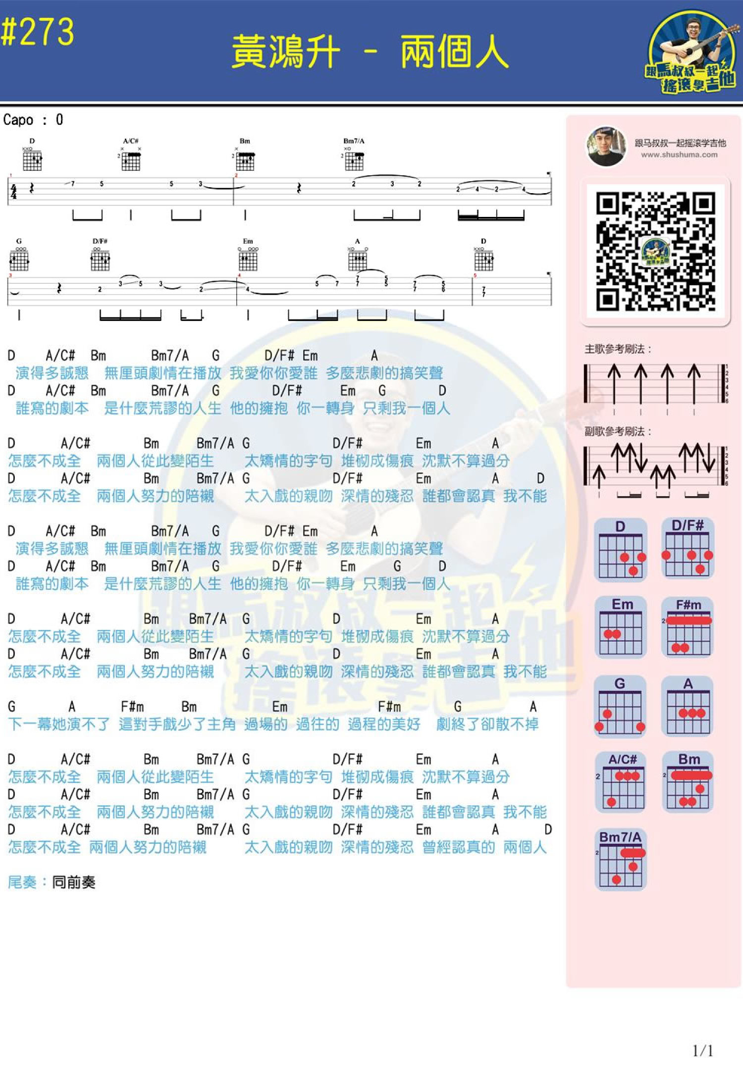 两个人吉他谱 - 黄鸿升 - 吉他弹唱谱 - 和弦谱