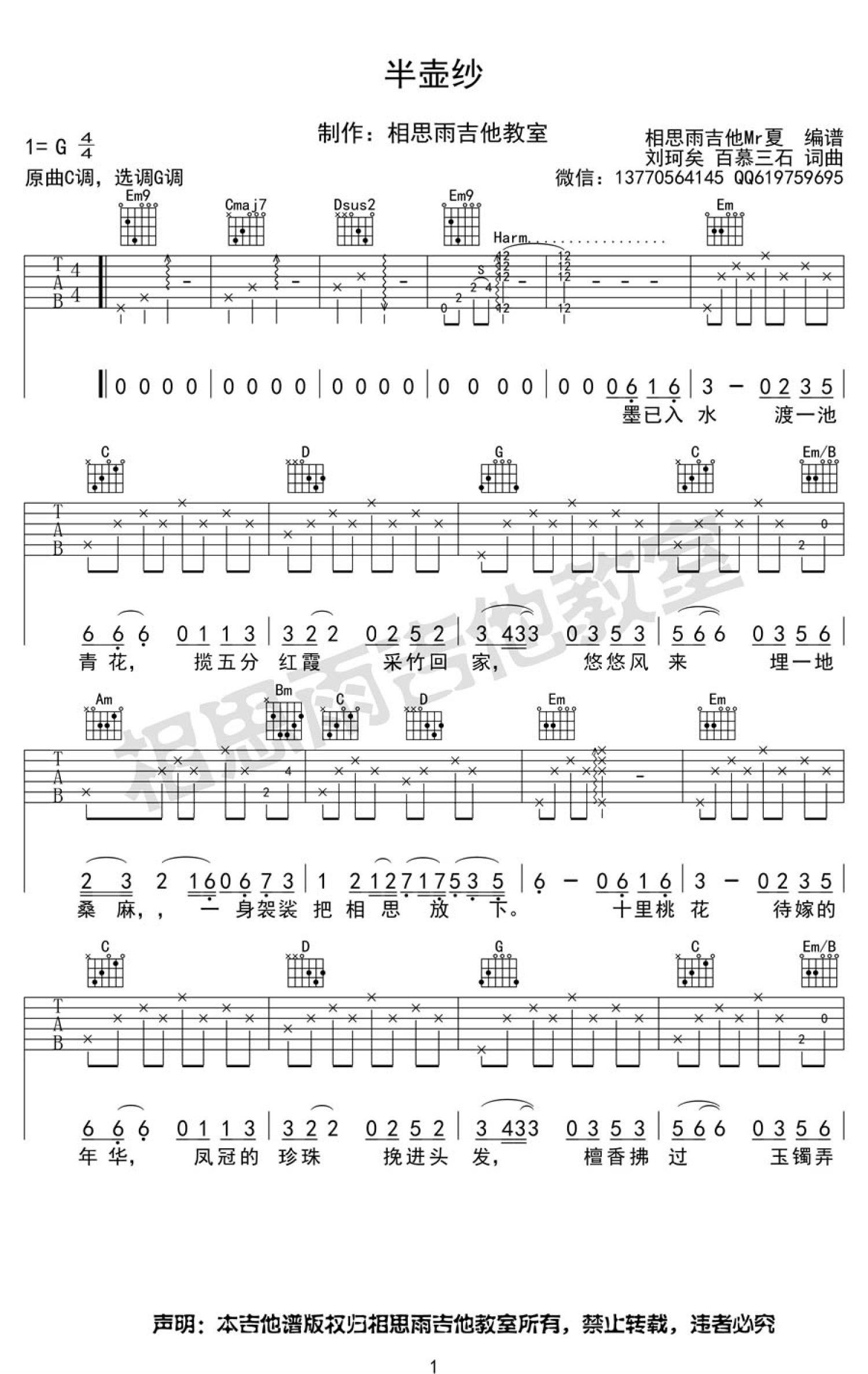 半壶纱吉他谱 - 刘珂矣 - G调吉他弹唱谱