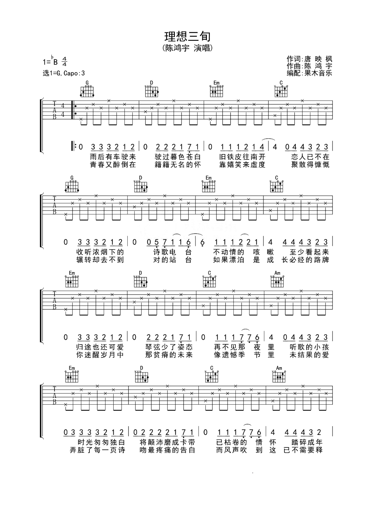 当前位置:琴谱网>吉他弹唱>理想三旬