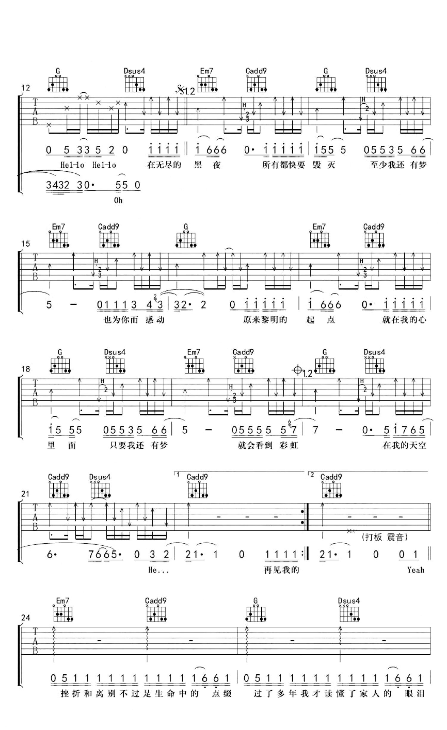 吉他弹唱G调来源:杨鑫6661 浏览2018-03-19 13:34发布图谱共4页