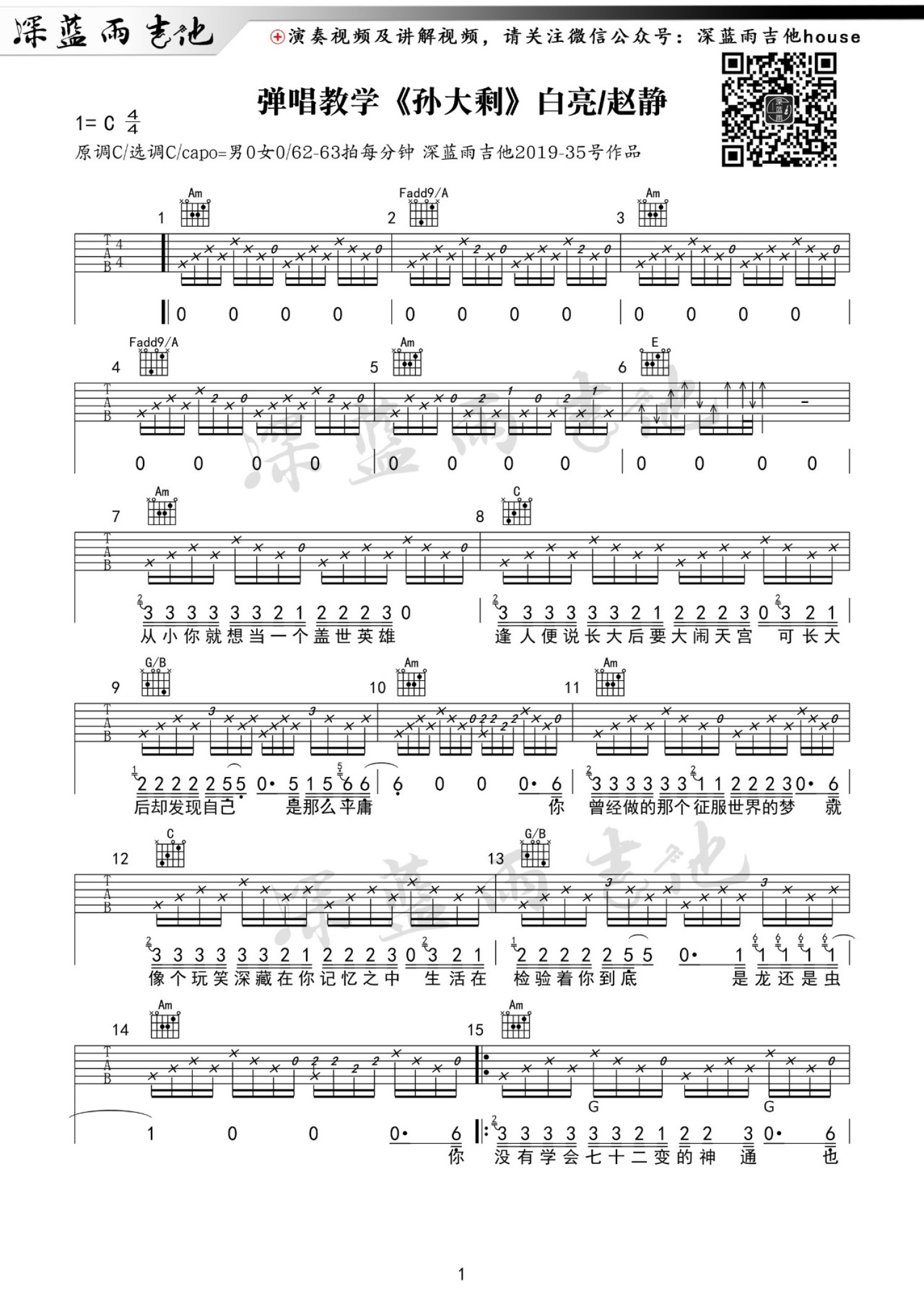 曲谱介绍: 白亮《孙大剩》吉他谱_C调吉他弹唱谱