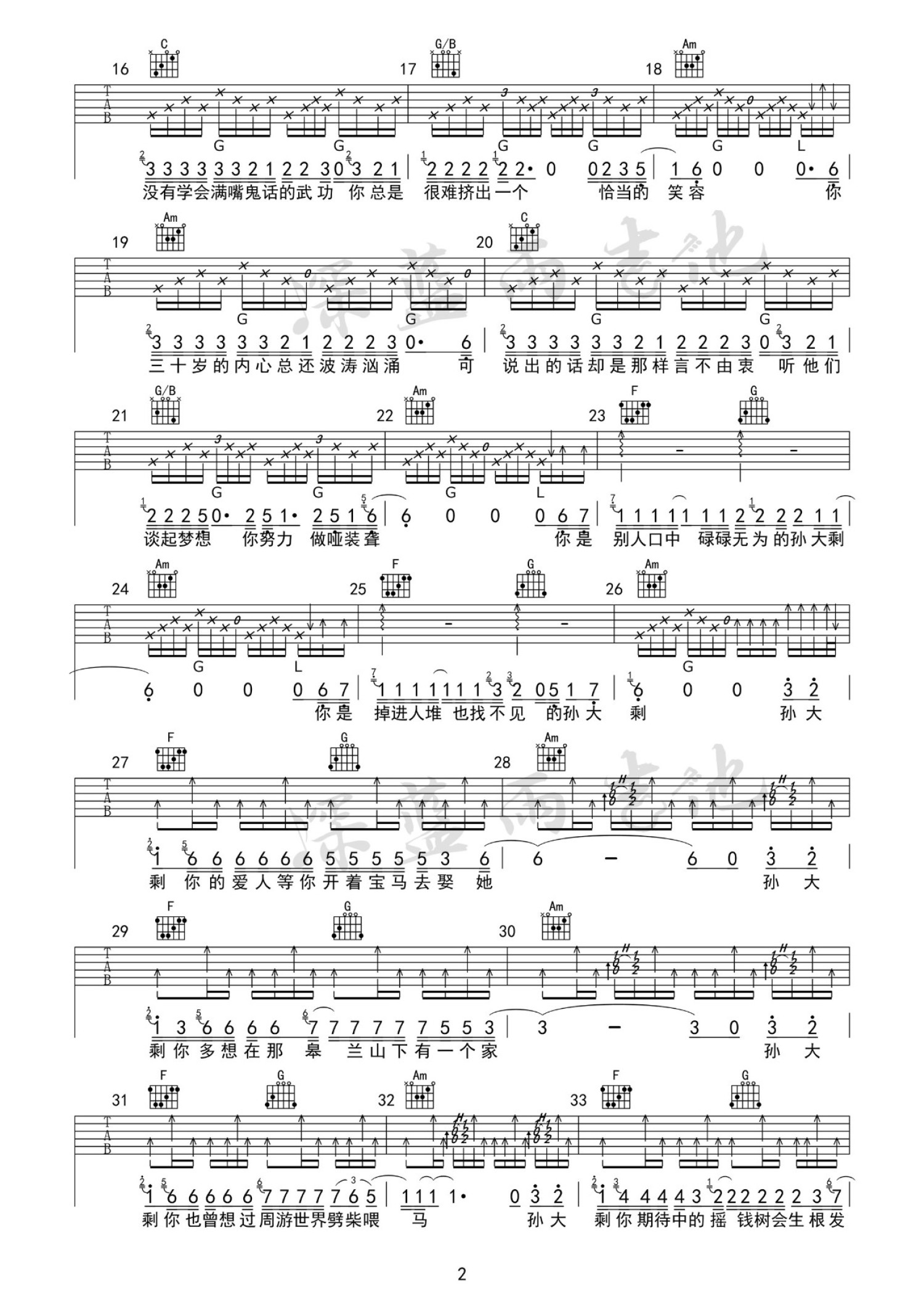当前位置:琴谱网>吉他弹唱>孙大剩
