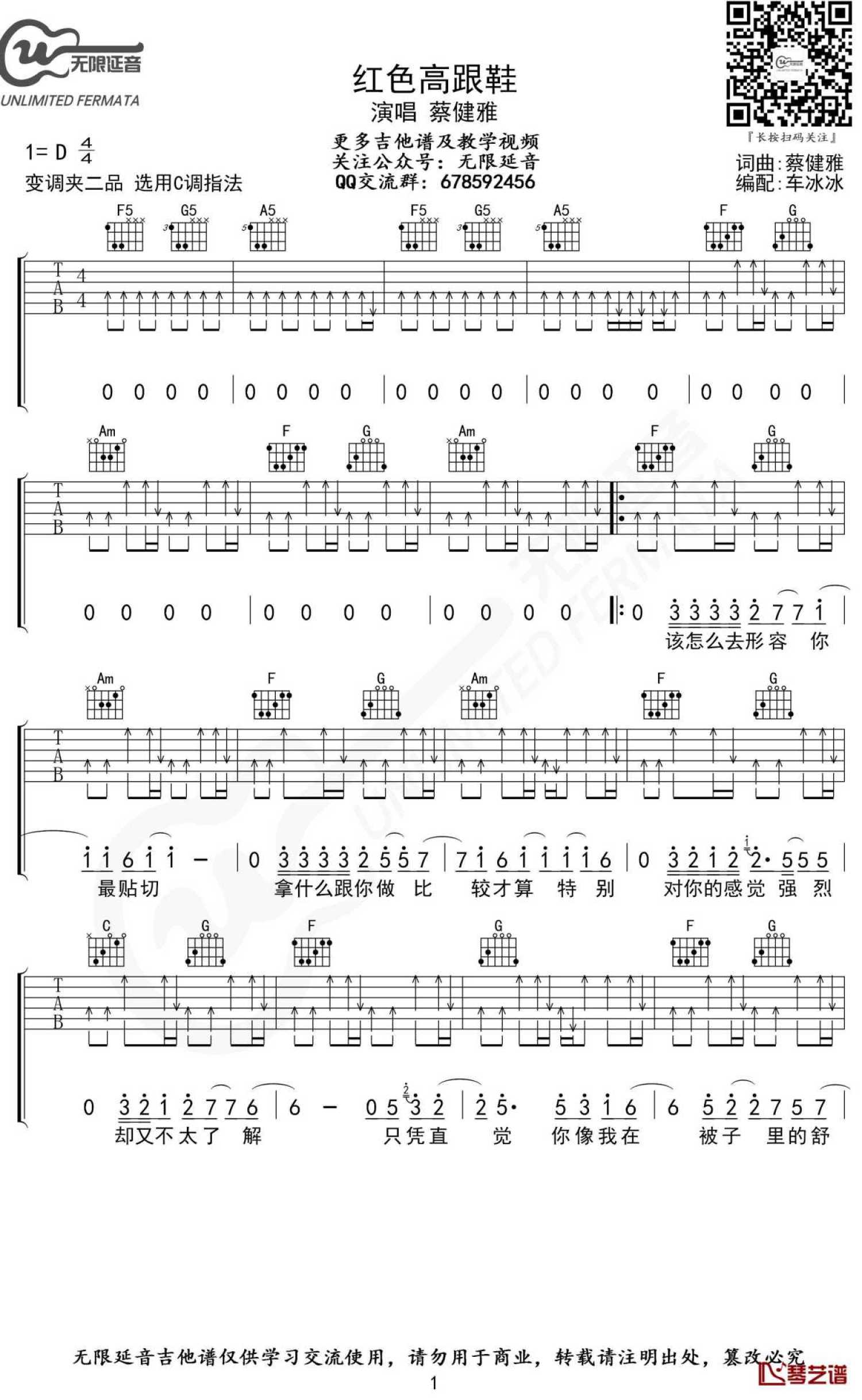 曲谱介绍: 蔡健雅《红色高跟鞋》吉他谱_C调吉他弹唱谱