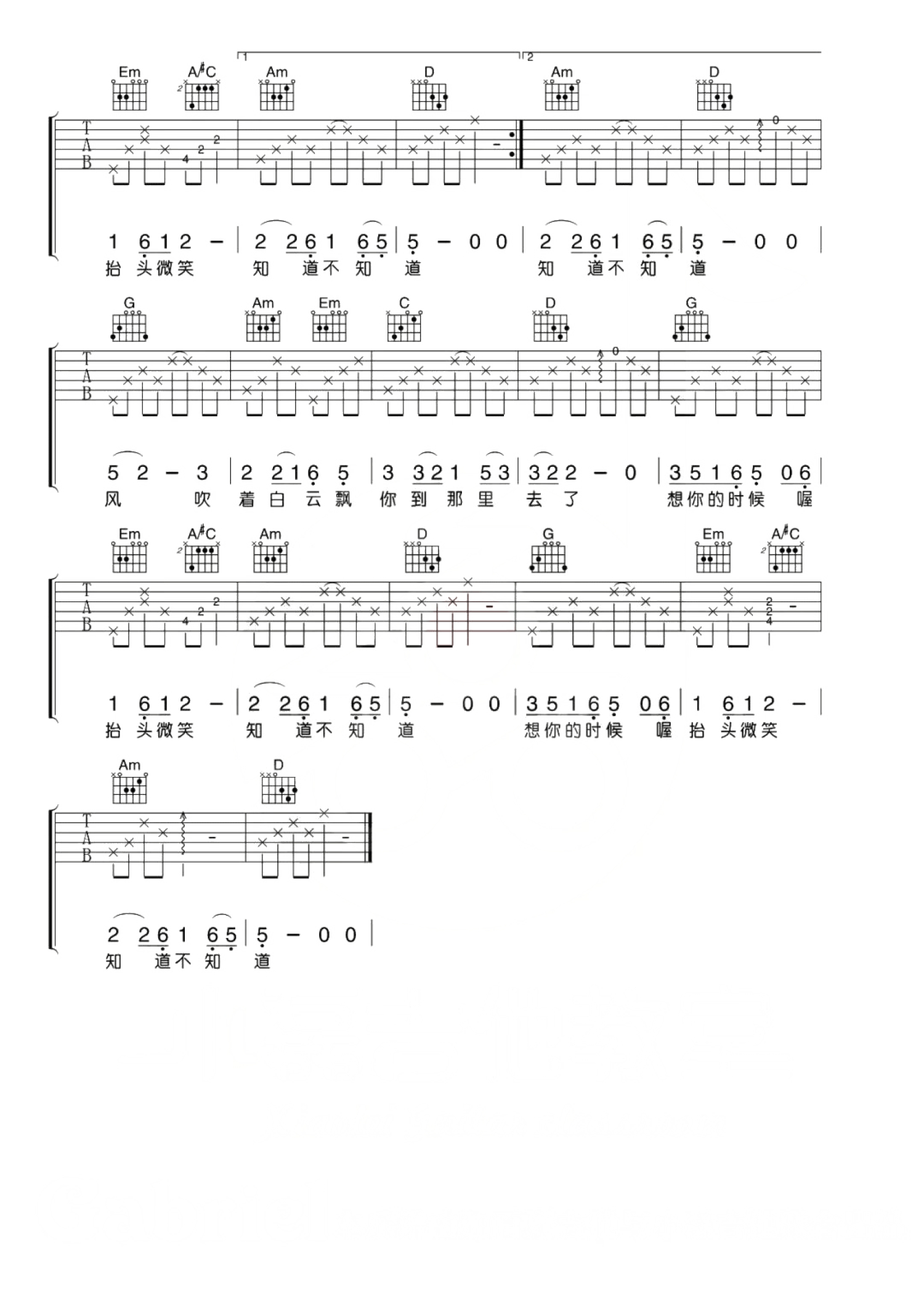 当前位置:琴谱网>吉他弹唱>知道不知道