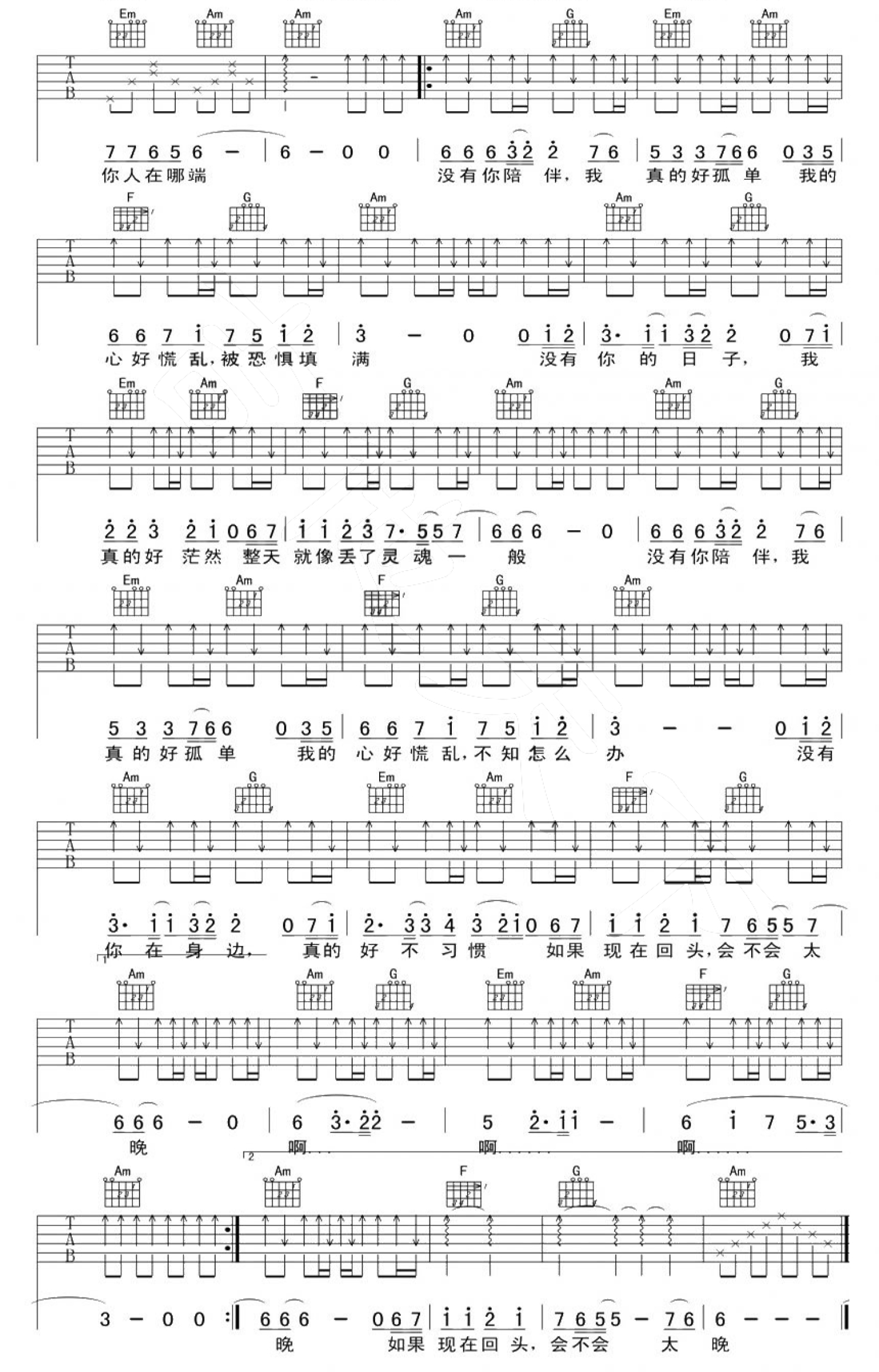 当前位置:琴谱网>吉他弹唱>没有你陪伴我真的好孤单