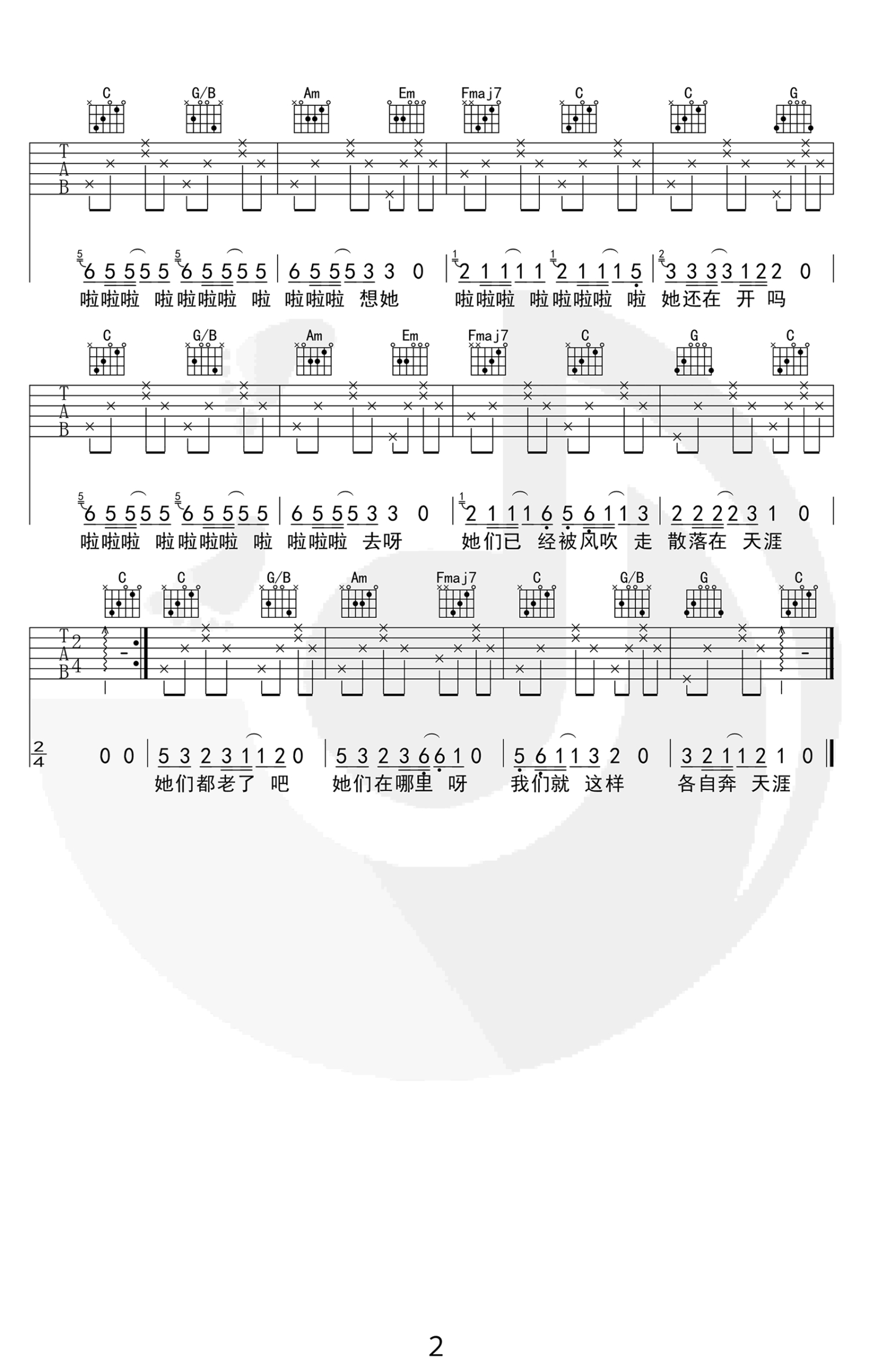 吉他弹唱C调来源:行叁人音乐913 浏览2020-09-30 10:35发布图谱共2页