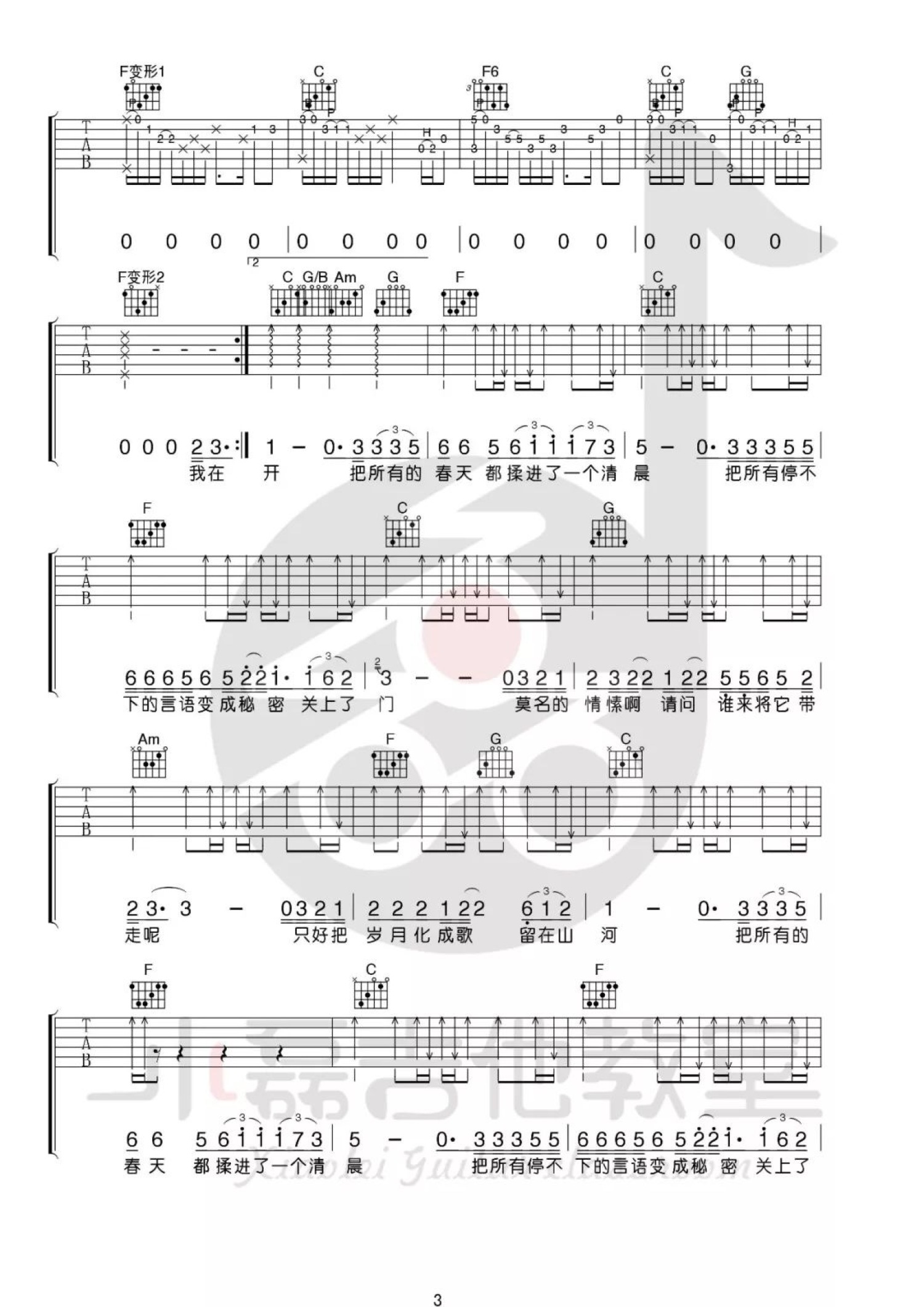 曲谱介绍: 鹿先森乐队《春风十里》吉他谱_C调吉他弹唱谱