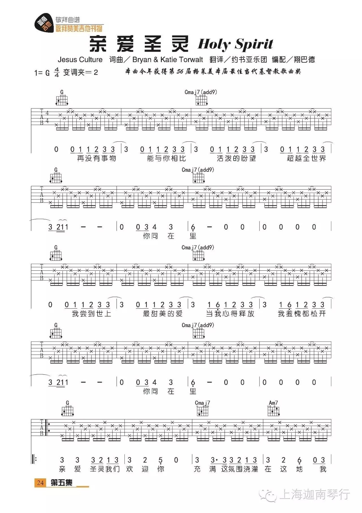 曲谱介绍: 赞美诗《亲爱圣灵》吉他谱_G调吉他弹唱谱