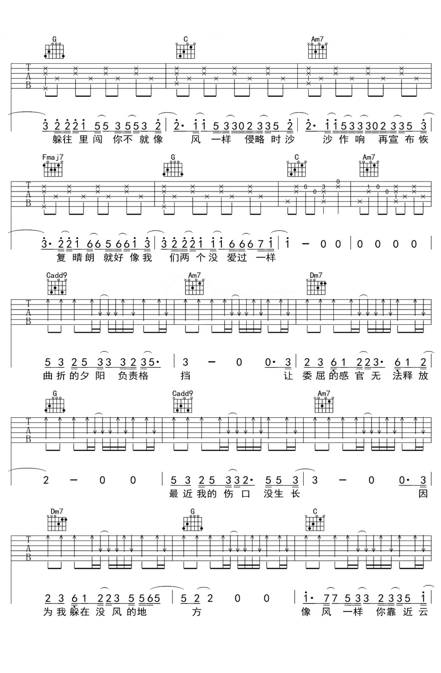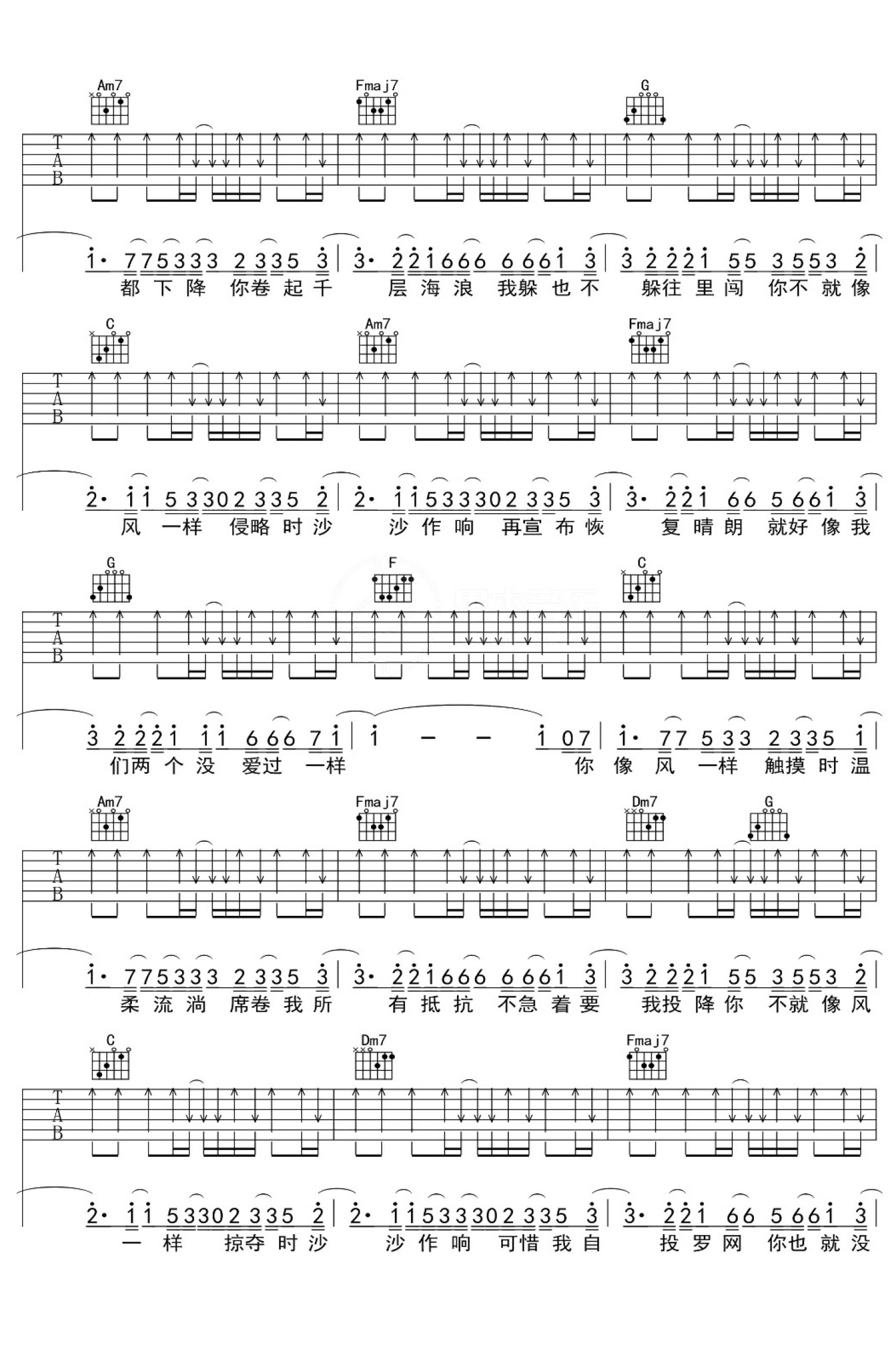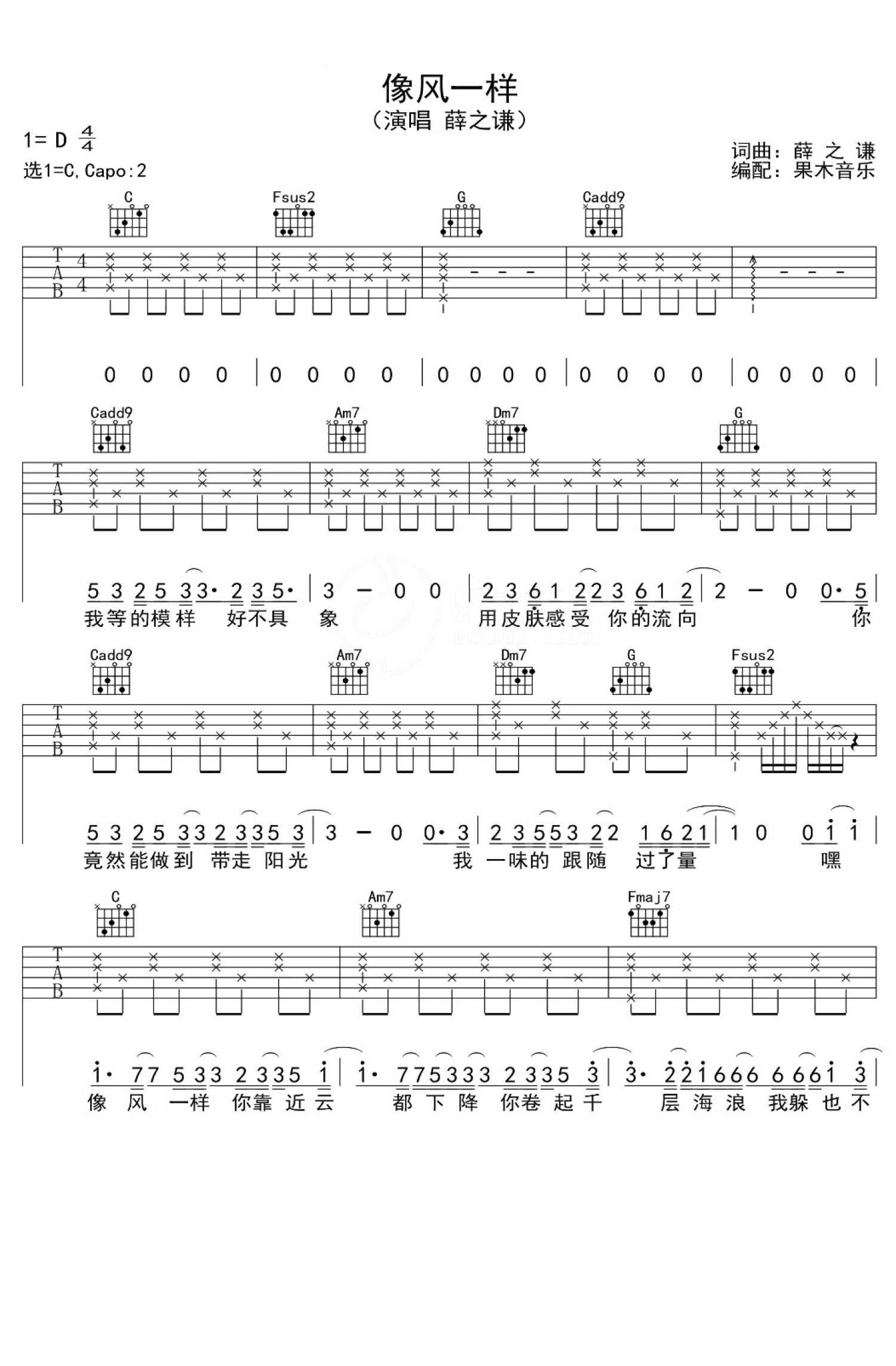 曲谱介绍: 薛之谦《像风一样》吉他谱_C调吉他弹唱谱
