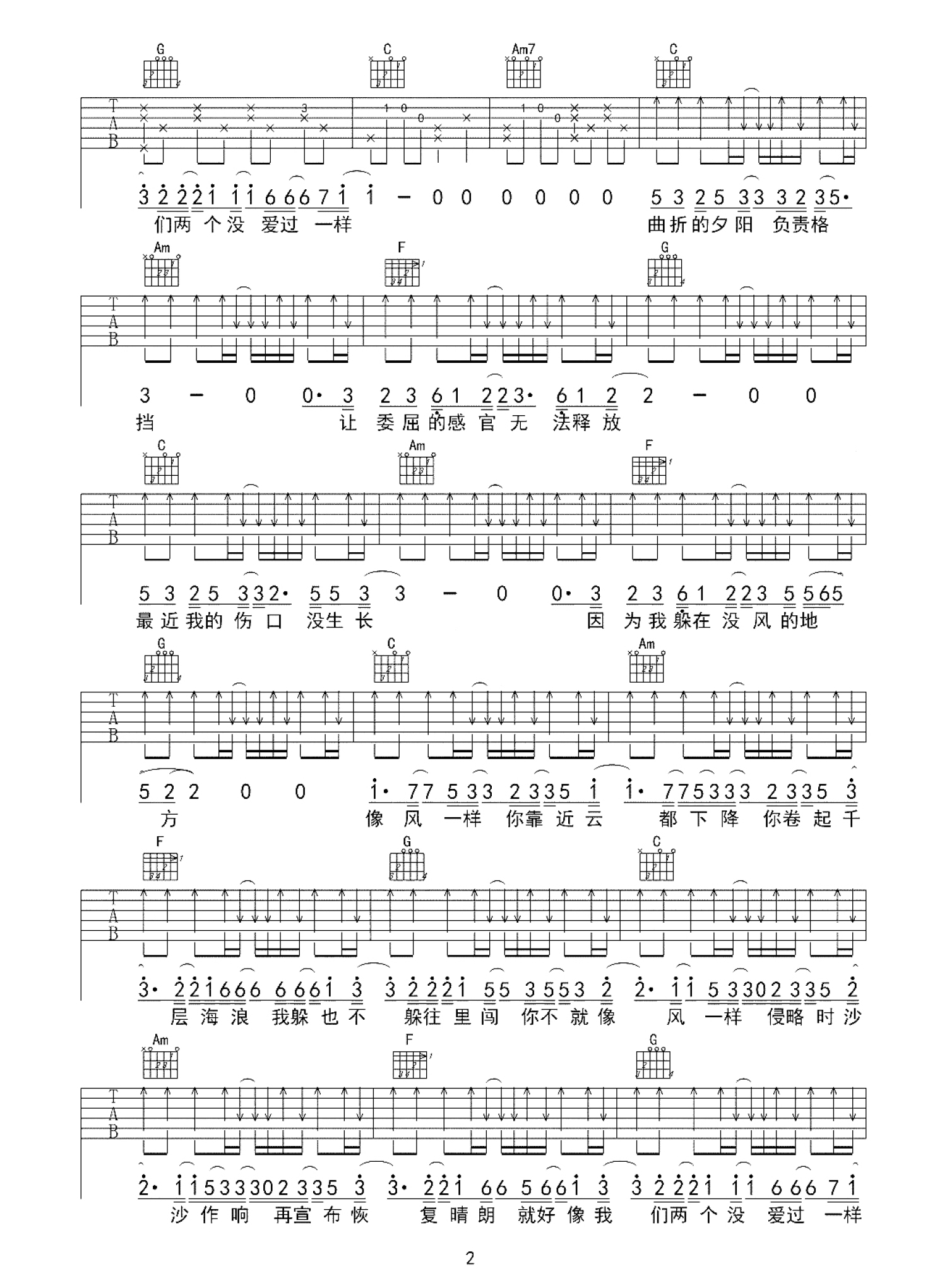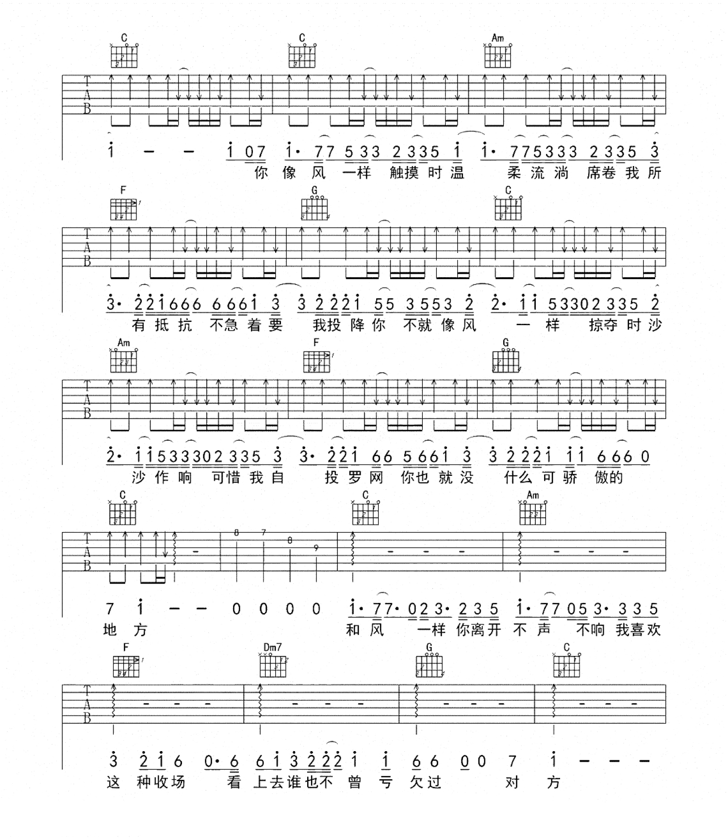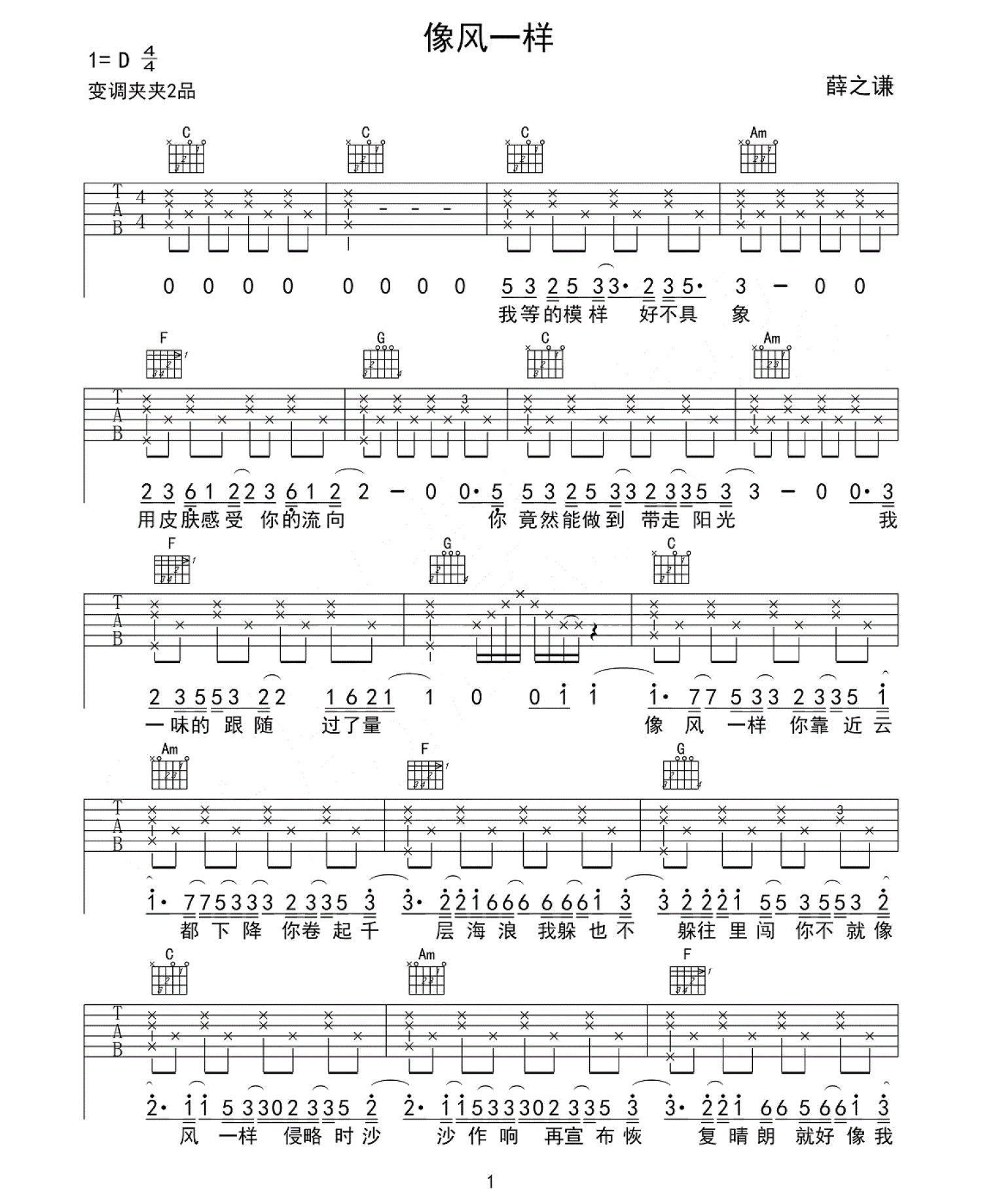 曲谱介绍: 薛之谦《像风一样》吉他谱_C调吉他弹唱谱