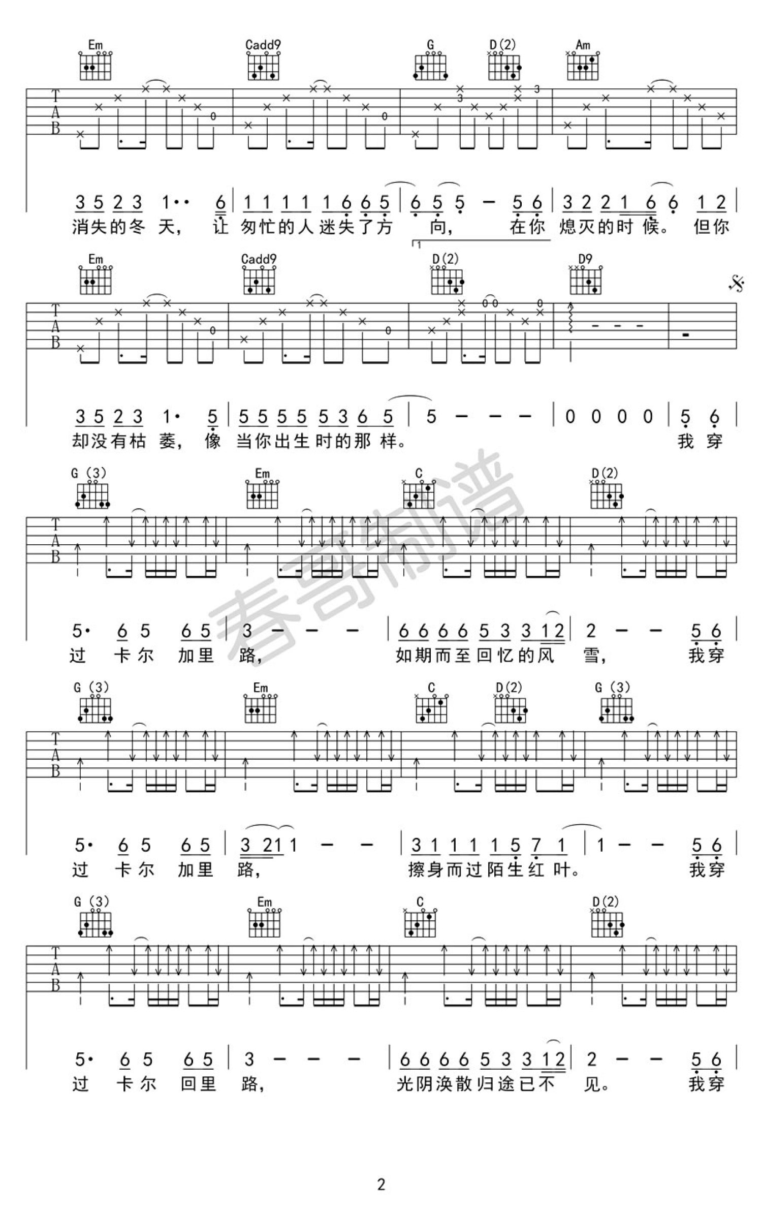 曲谱介绍: 丢火车乐队演唱,卡尔加里路吉他谱,G调指法编配。听腻了午夜城市的车水马龙,听听民谣里的故乡结,走进一支歌谣,一条老街的温柔往事里。每个人心中都有那么一条路,它属于记忆,可能我们曾用尽了一身的本领想要忘记它,但它却更坚实的生长在我们的心里。当“光阴涣散,归途已不见”的时候,也只能在心中默念它的名字!