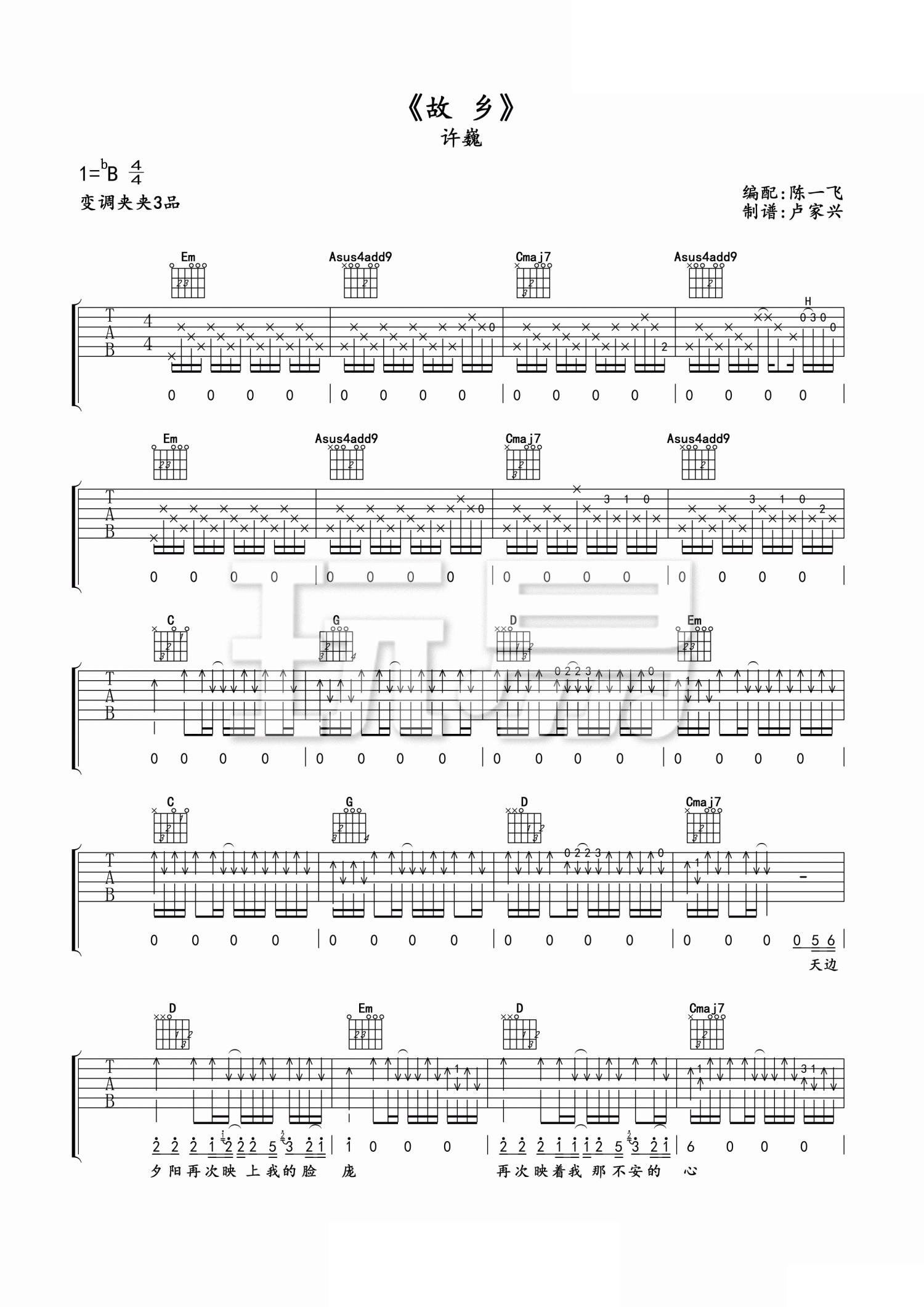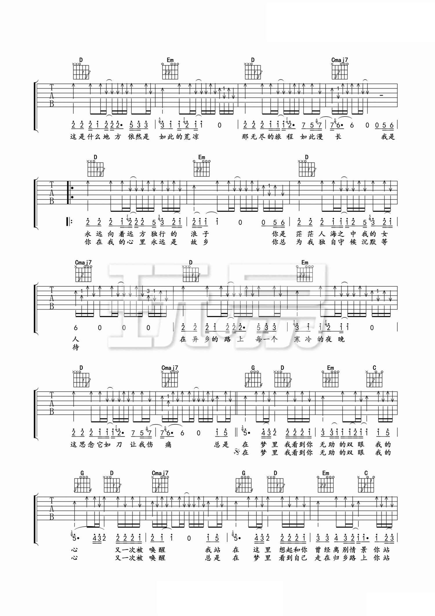 曲谱介绍: 许巍《故乡》吉他谱_G调吉他弹唱谱