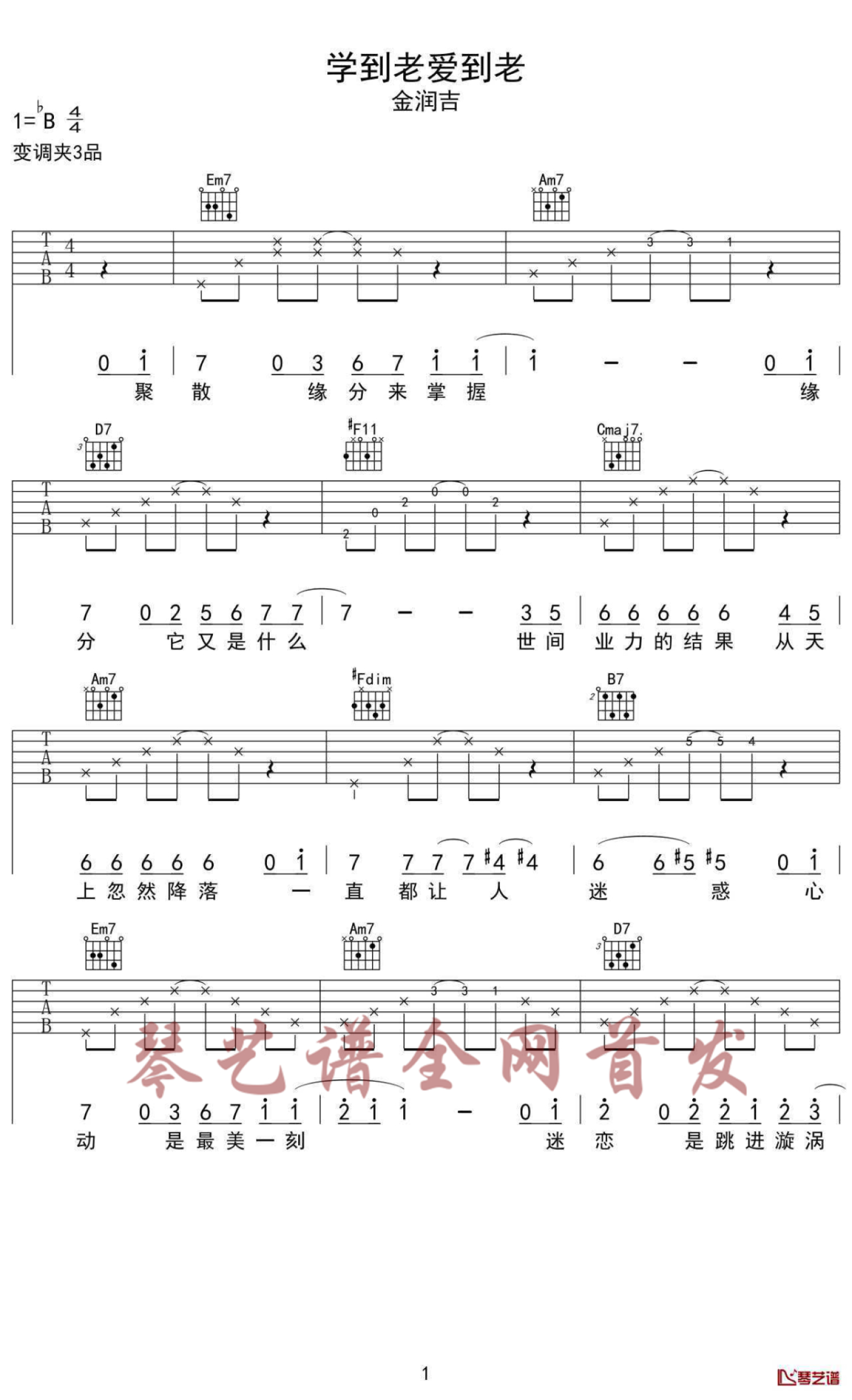学到老爱到老吉他谱 - 金润吉 - G调吉他弹唱谱
