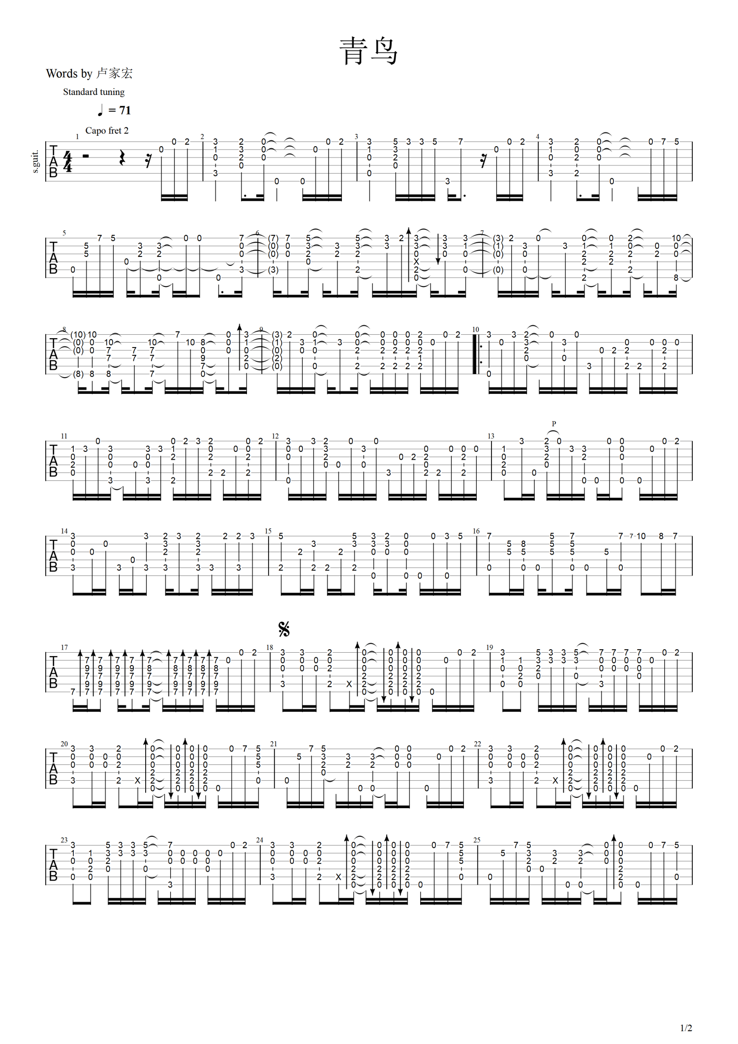 • 青鸟吉他谱 - 火影忍者插曲 - 吉他独奏谱第1张