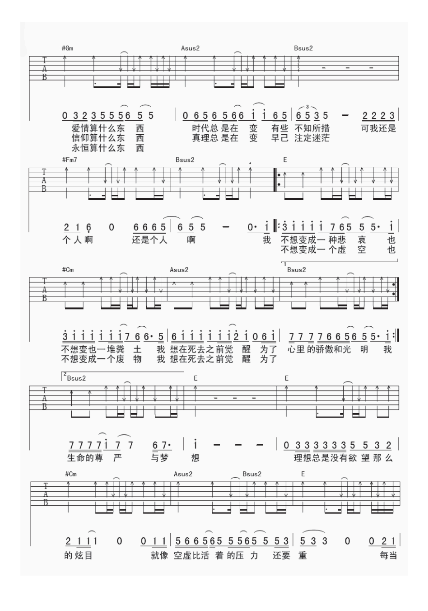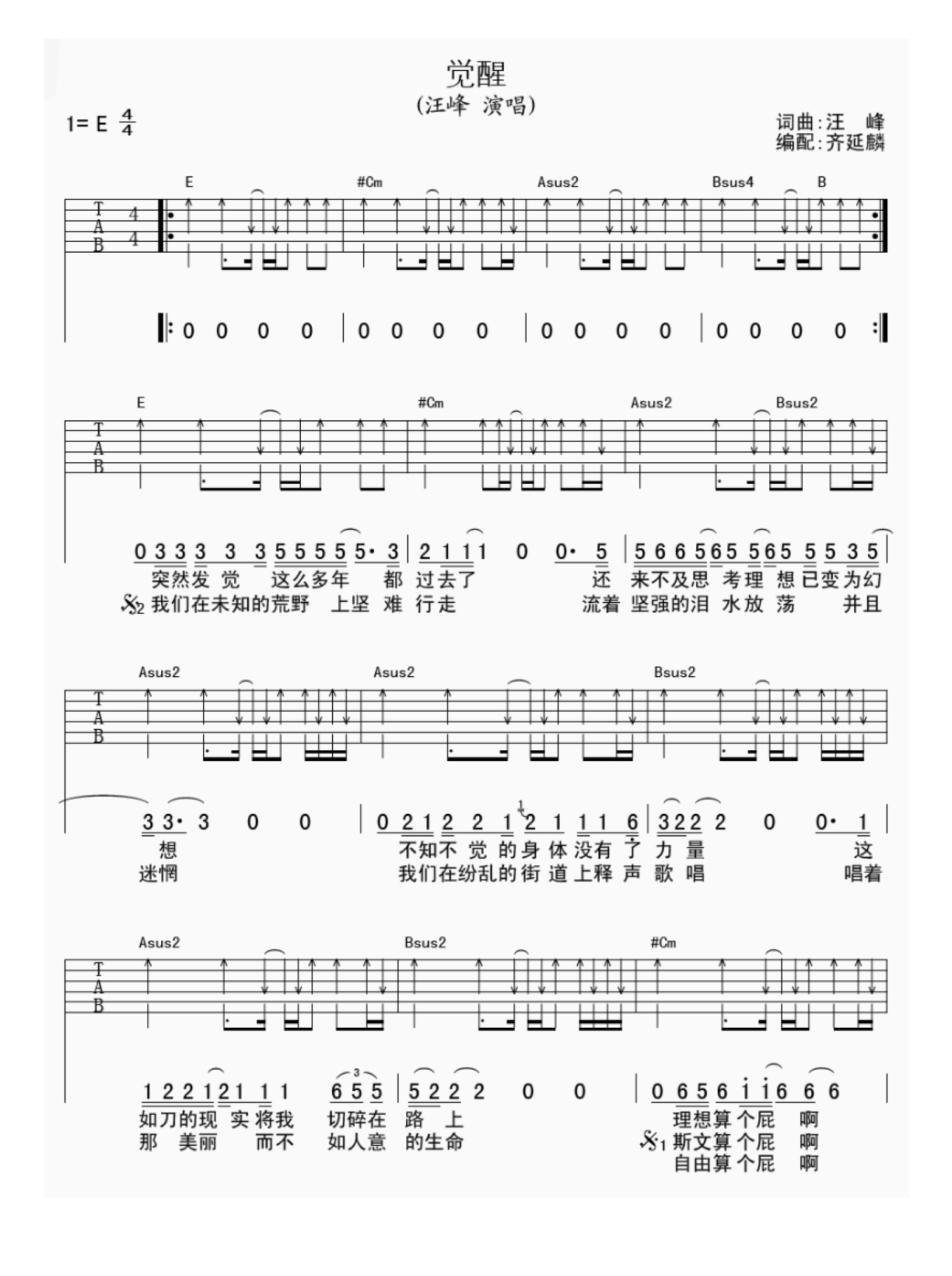 曲谱介绍: 汪峰《觉醒》吉他谱_E调吉他弹唱谱