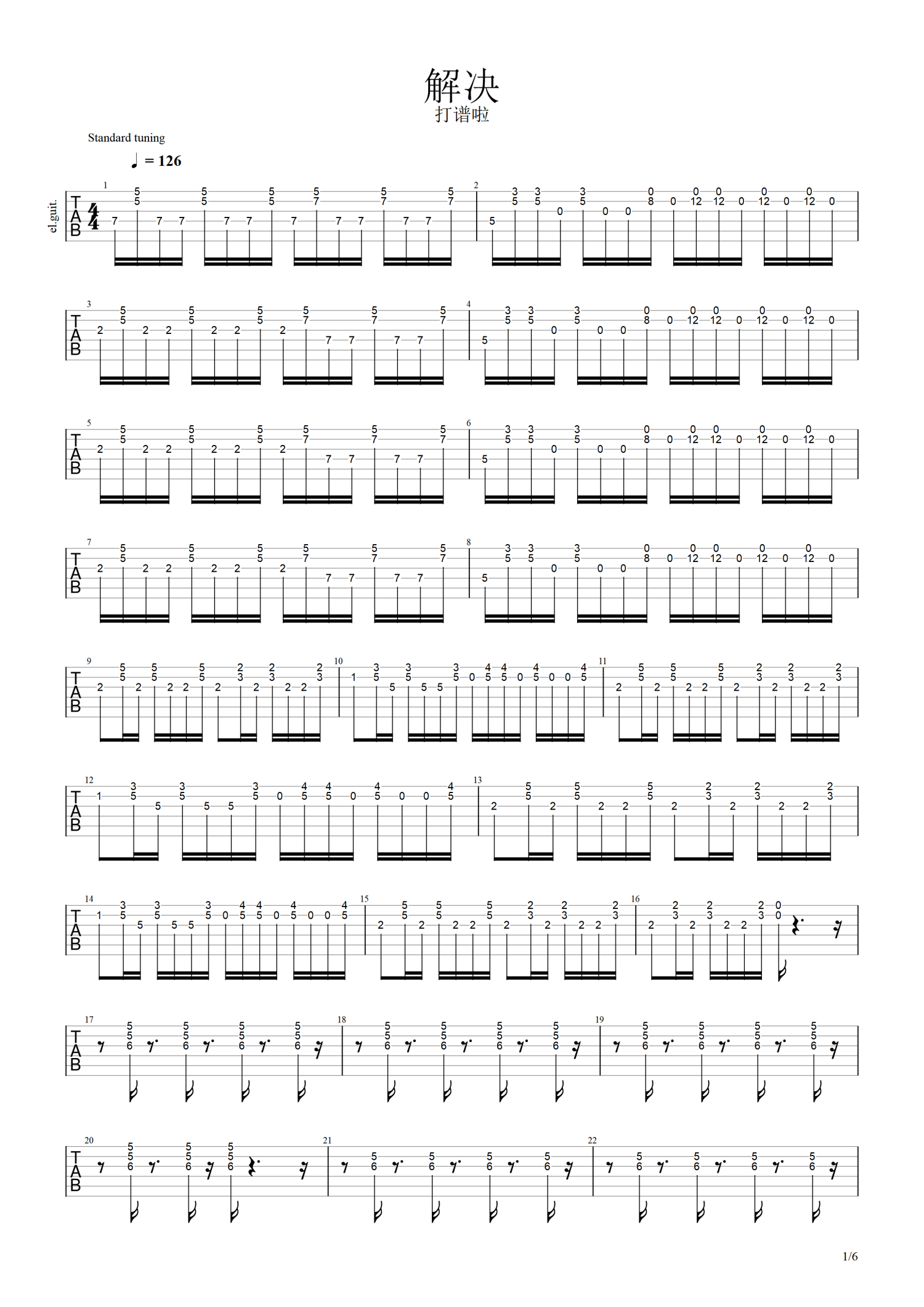 当前位置:琴谱网>电吉他谱>解决