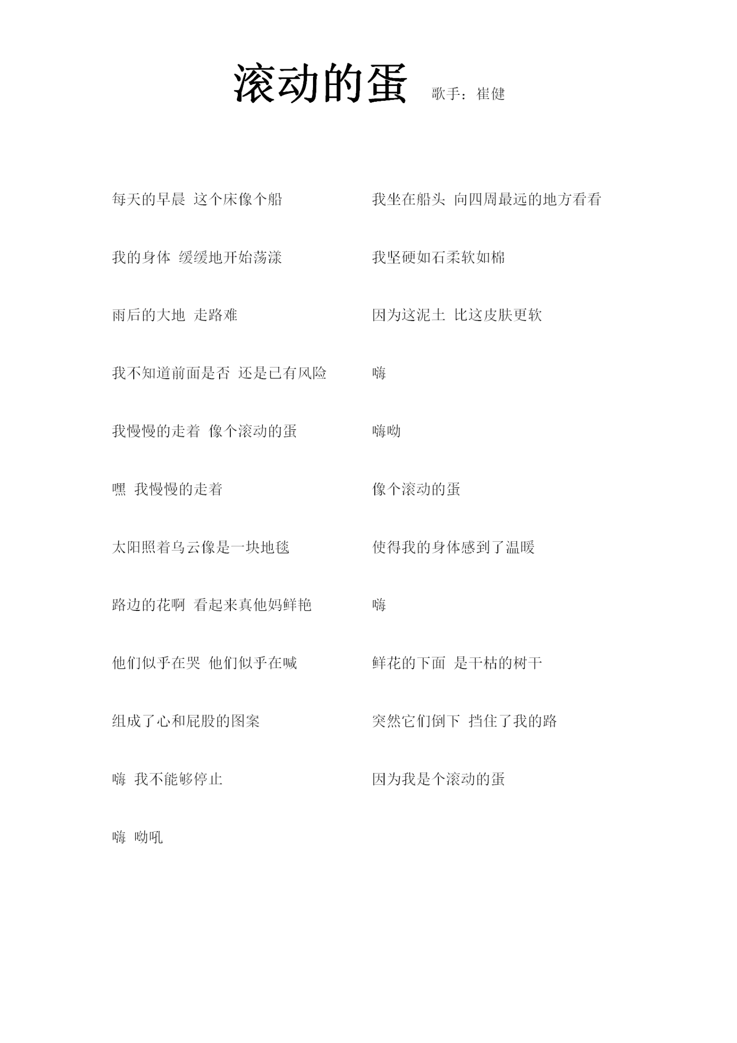曲谱介绍: 崔健《滚动的蛋》歌词_简谱_无简谱,仅歌词