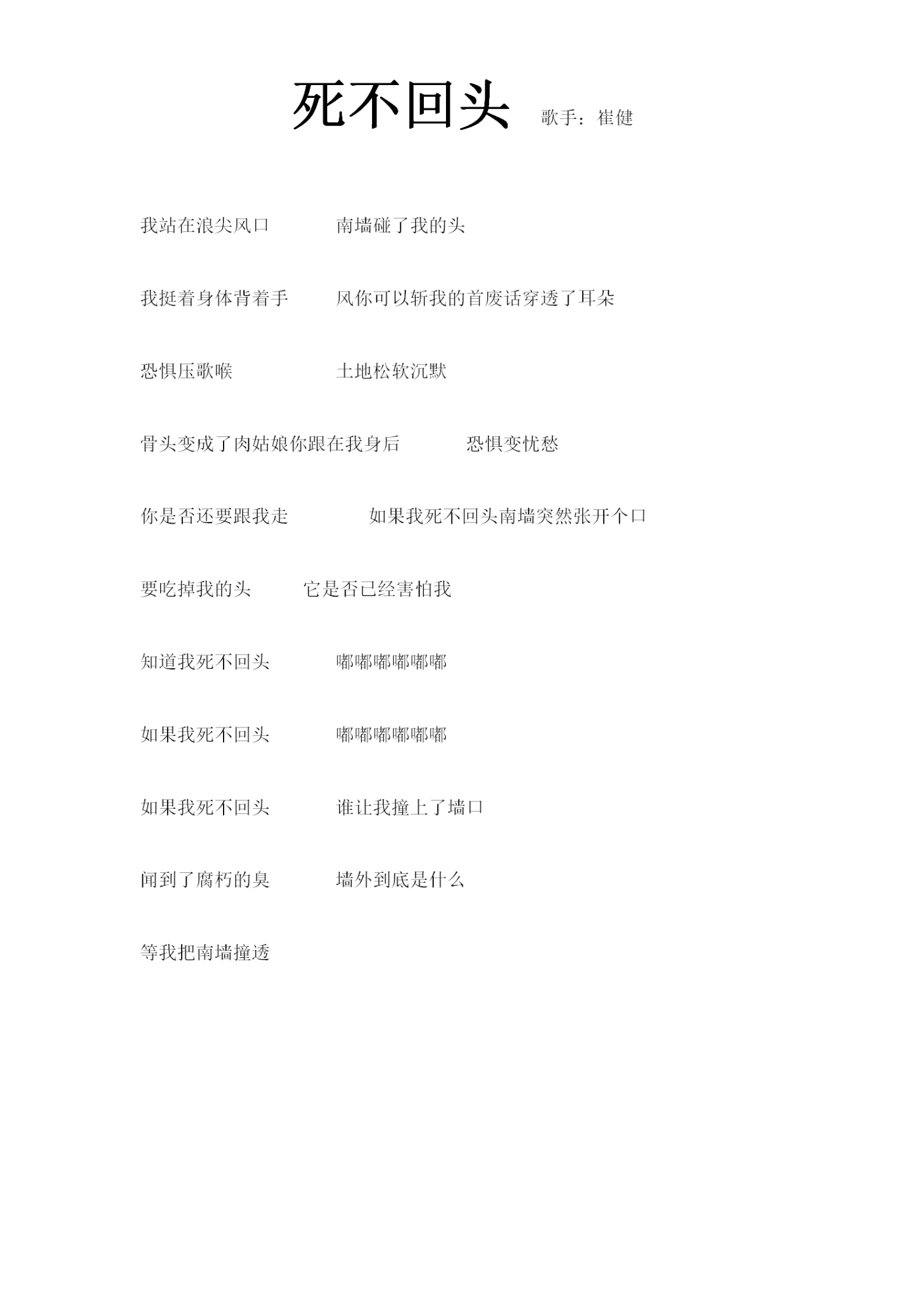 曲谱介绍: 崔健《死不回头》歌词_简谱_仅歌词