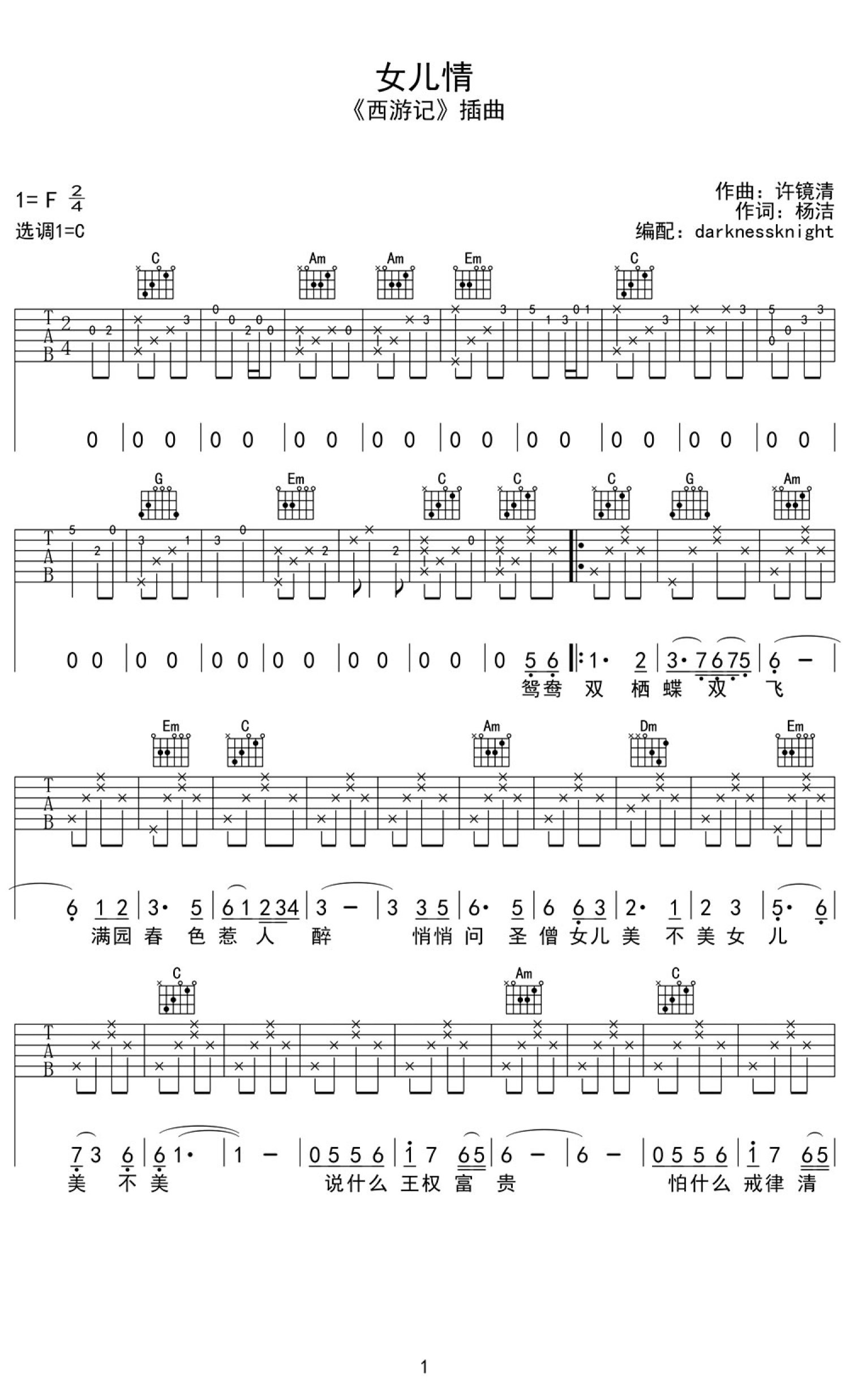 吉他弹唱C调来源:darknessknighe1960 浏览2018-03-19 13:34发布图谱共2页