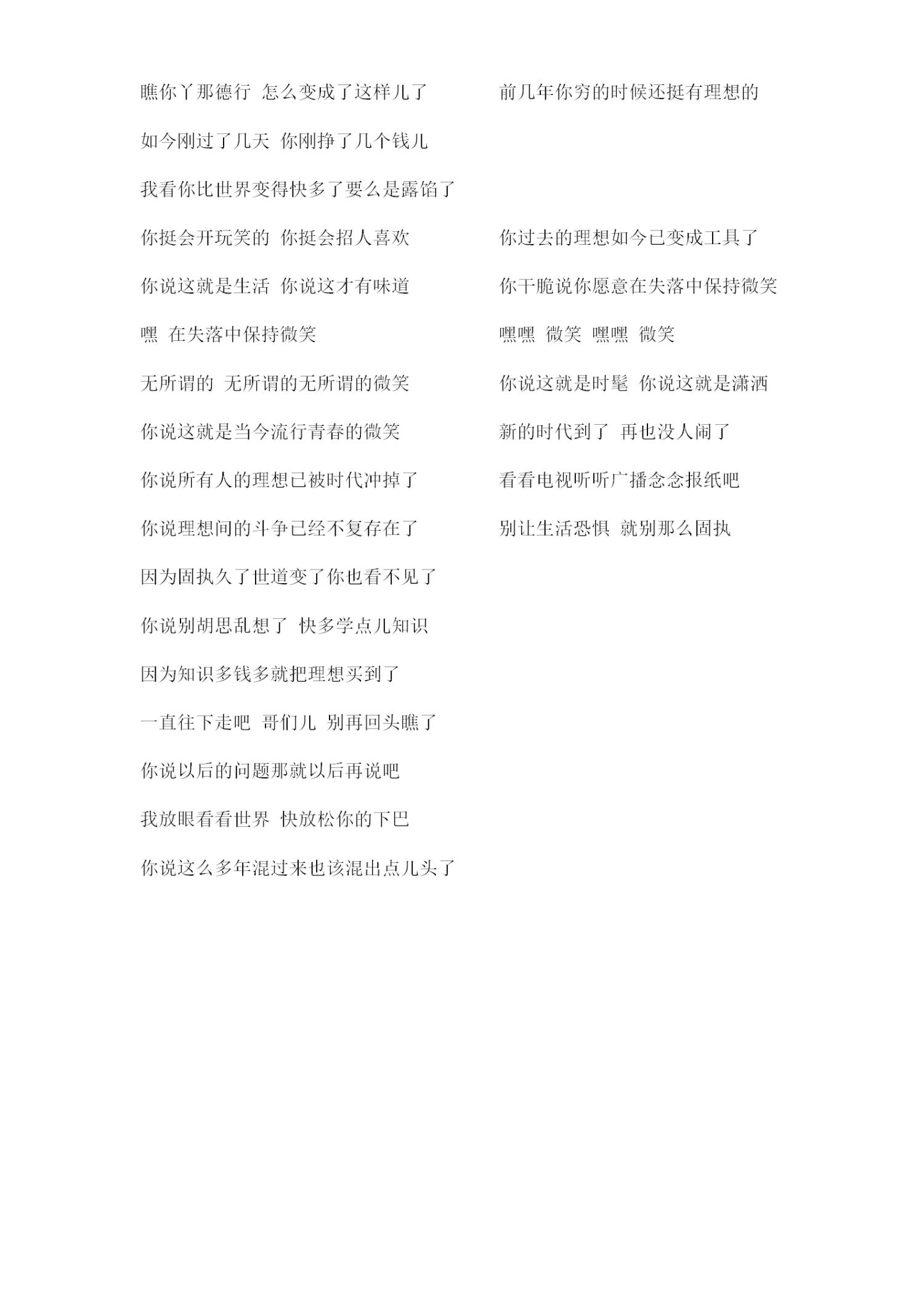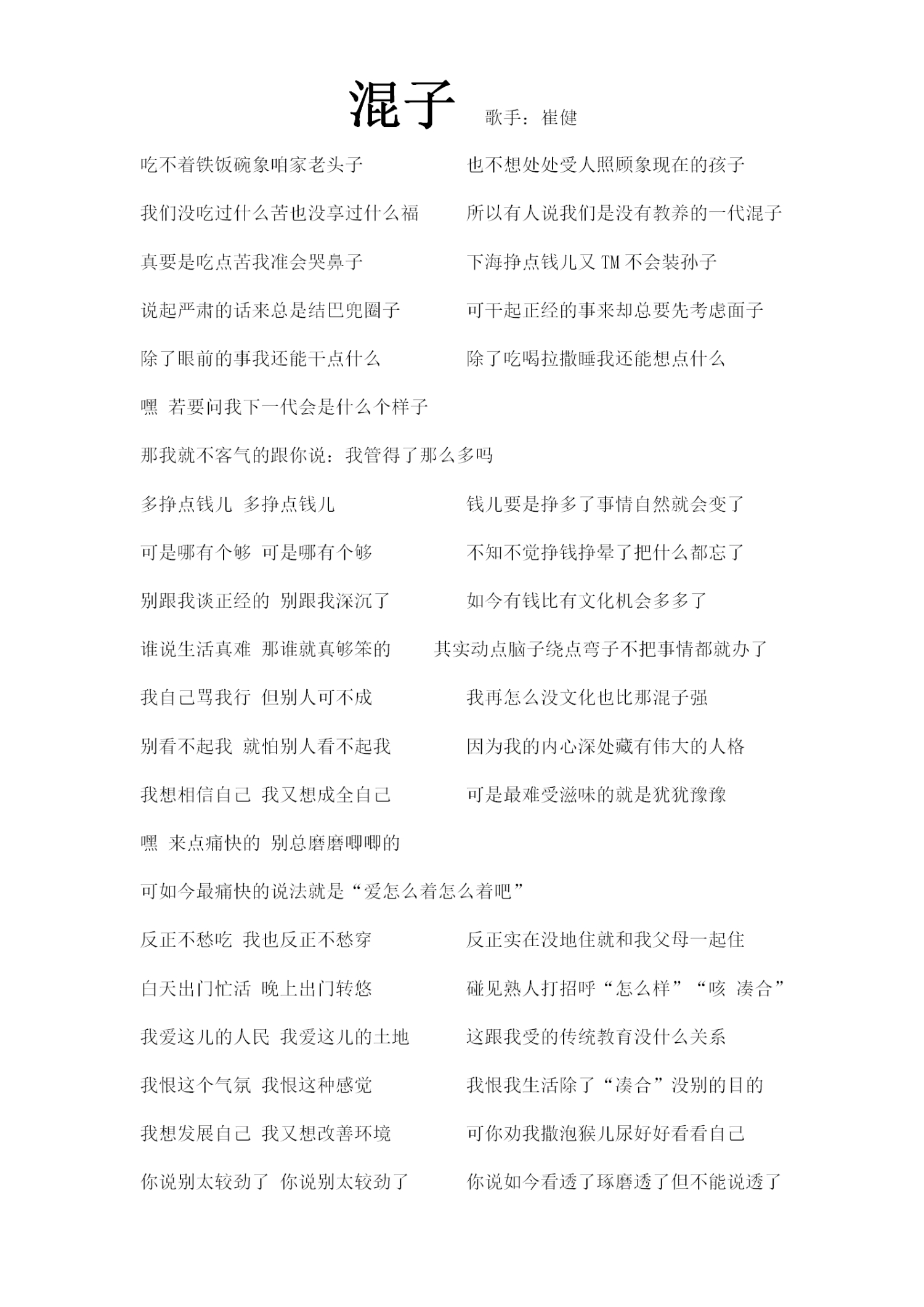 曲谱介绍: 崔健《混子》歌词_简谱_仅歌词
