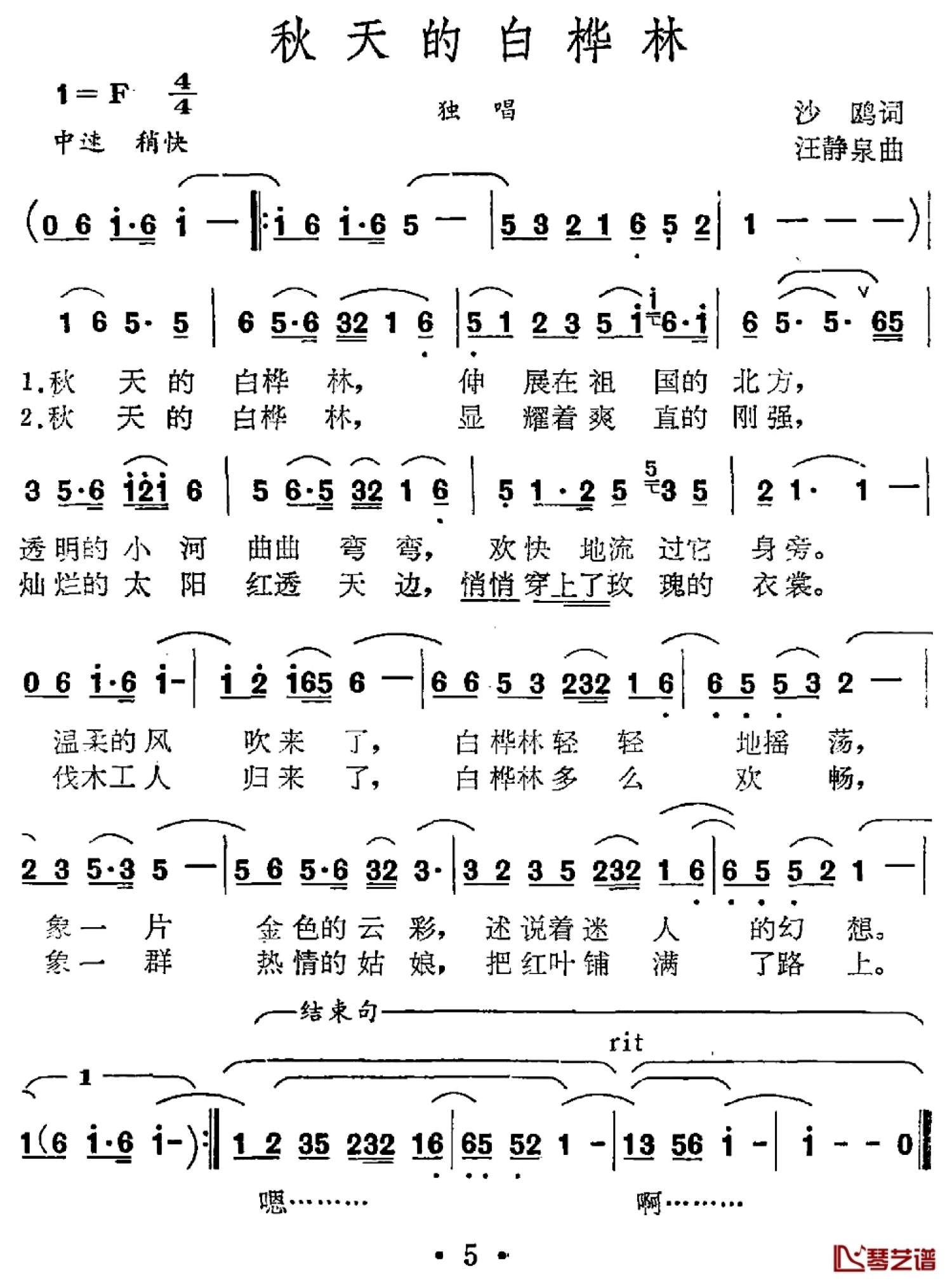 当前位置:琴谱网>简谱>秋天的白桦林