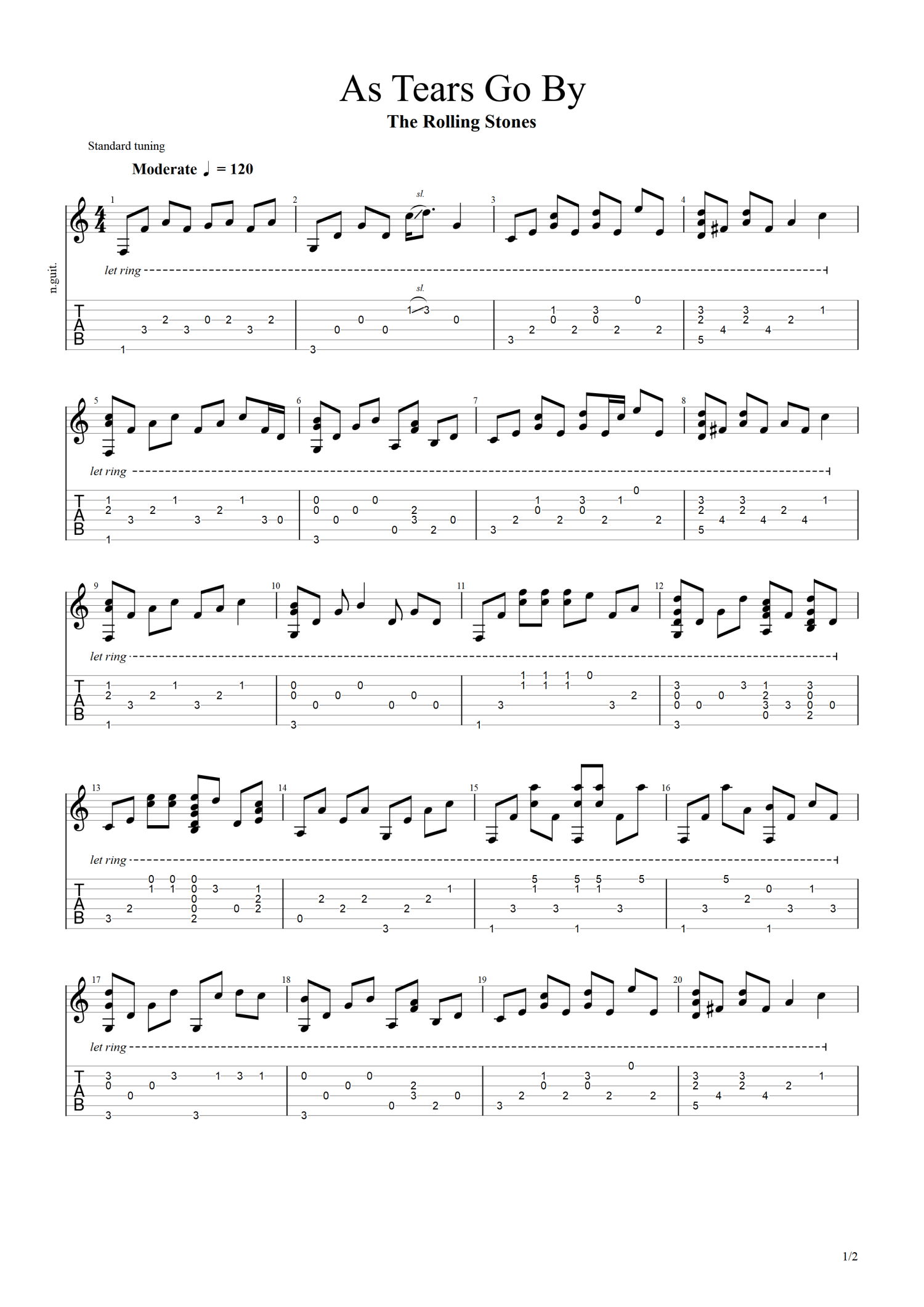 • As Tears Go By吉他谱 - The Rolling Stones - C调吉他独奏谱 - 带五线谱第1张