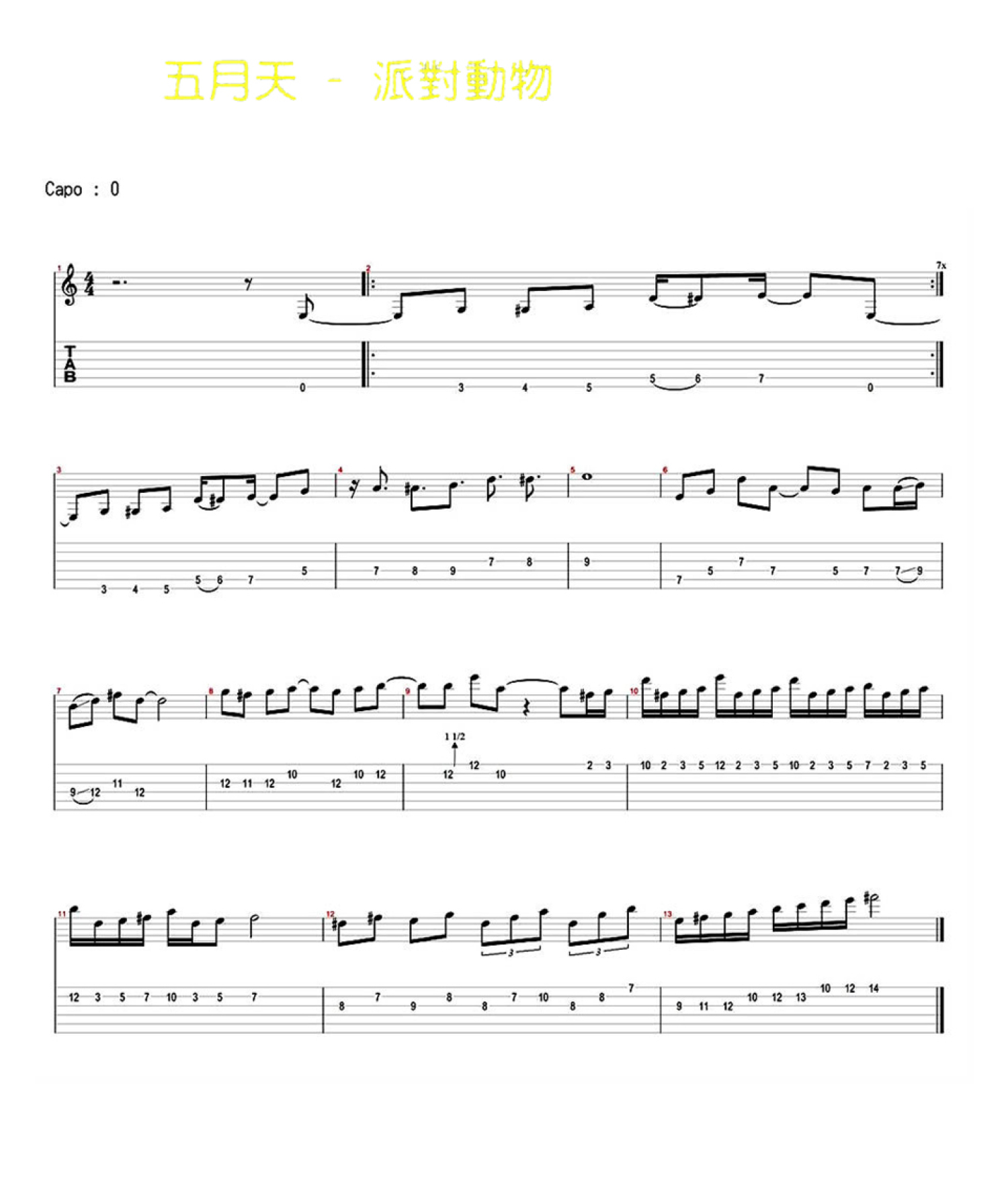 派对动物吉他谱 - 五月天 - 吉他独奏谱