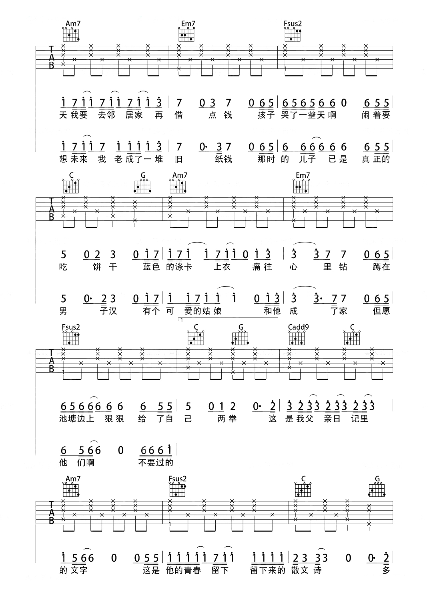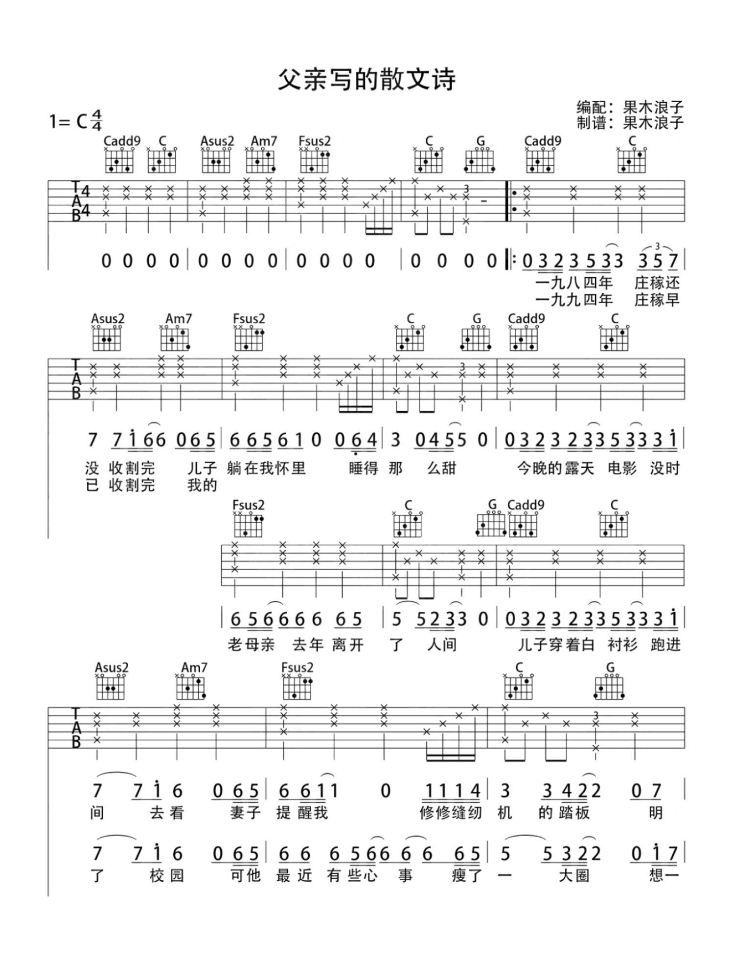 曲谱介绍: 许飞《父亲写的散文诗》吉他谱_C调吉他弹唱谱