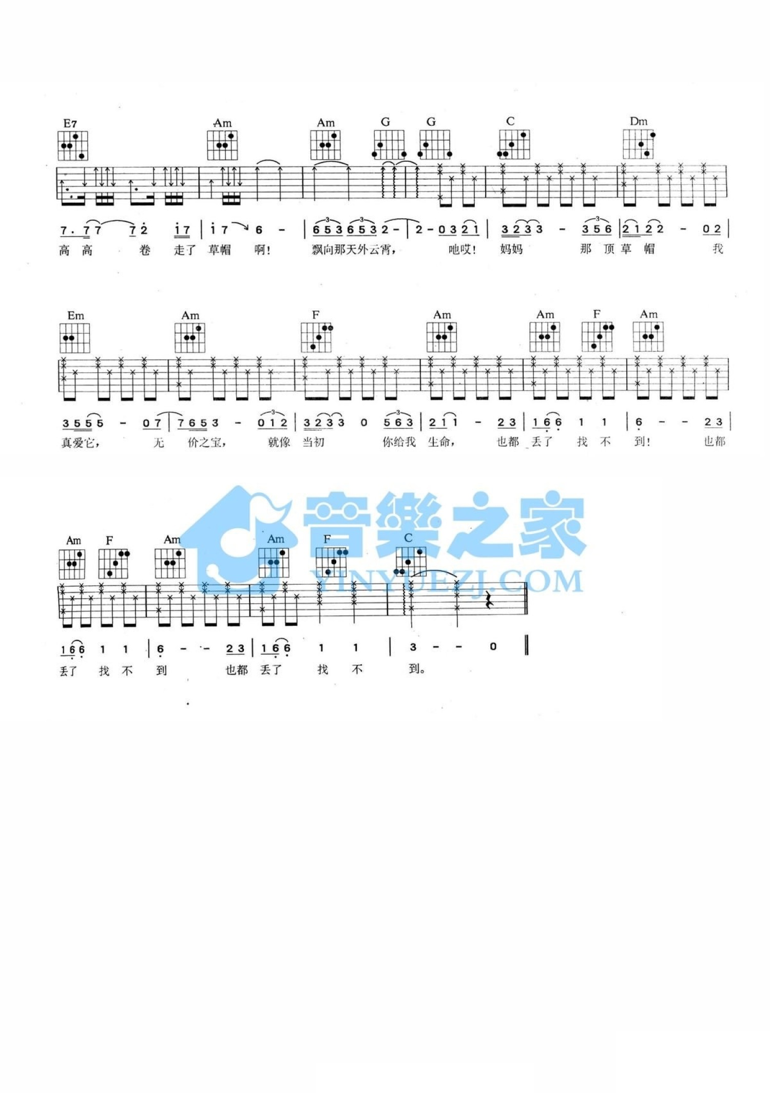 当前位置:琴谱网>吉他弹唱>草帽歌